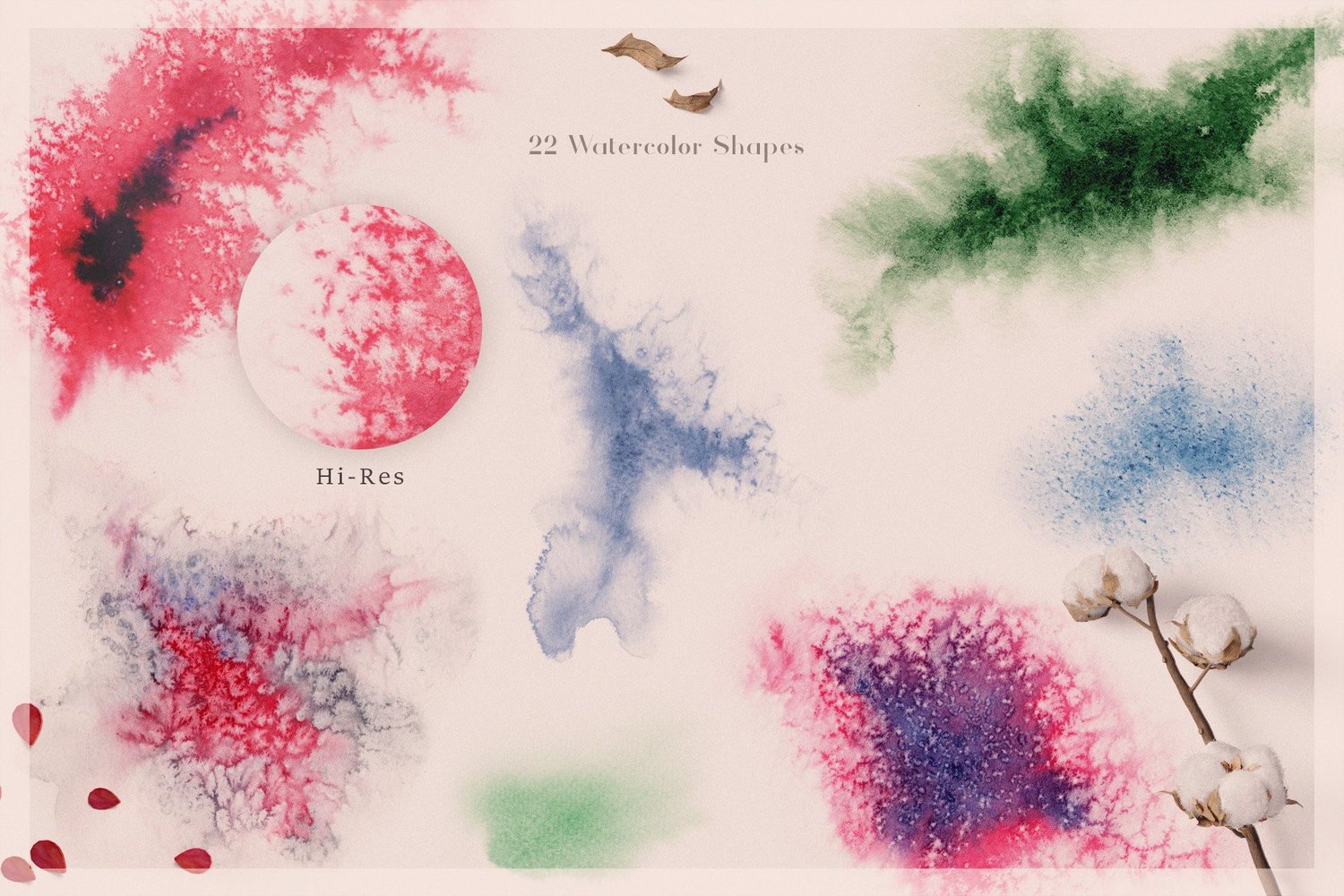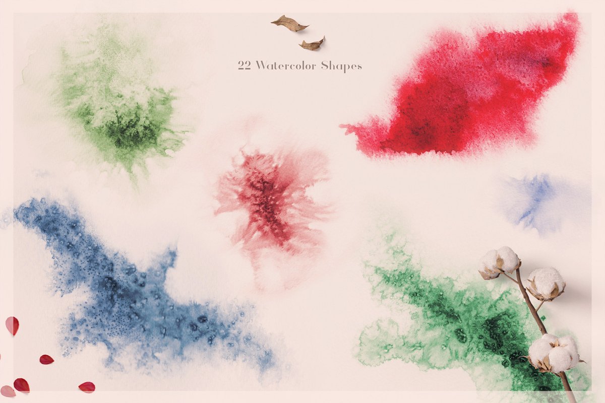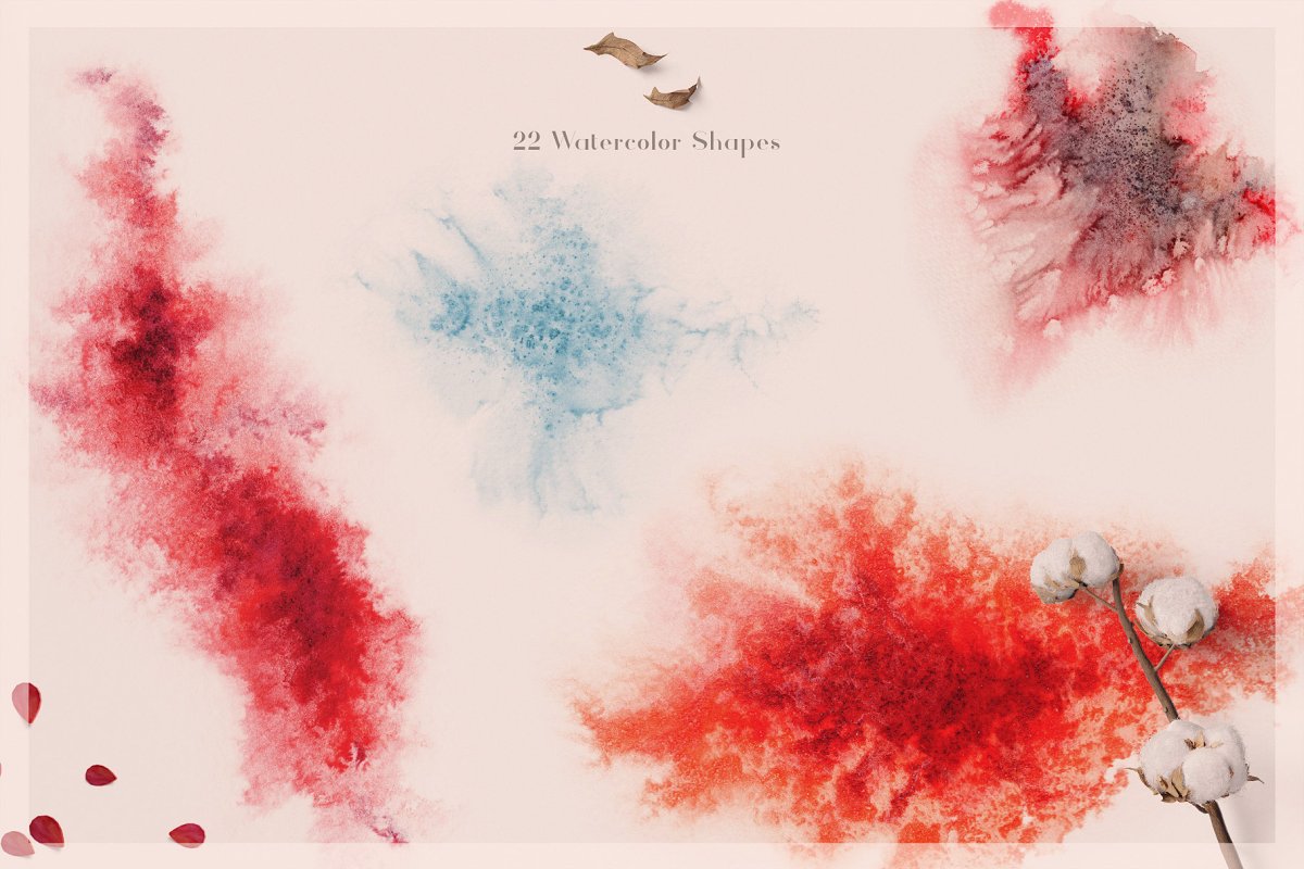 This set contains 22 beautiful watercolor shapes. You can use it as a background, part of a composition, or simply as a full-fledged drawing.