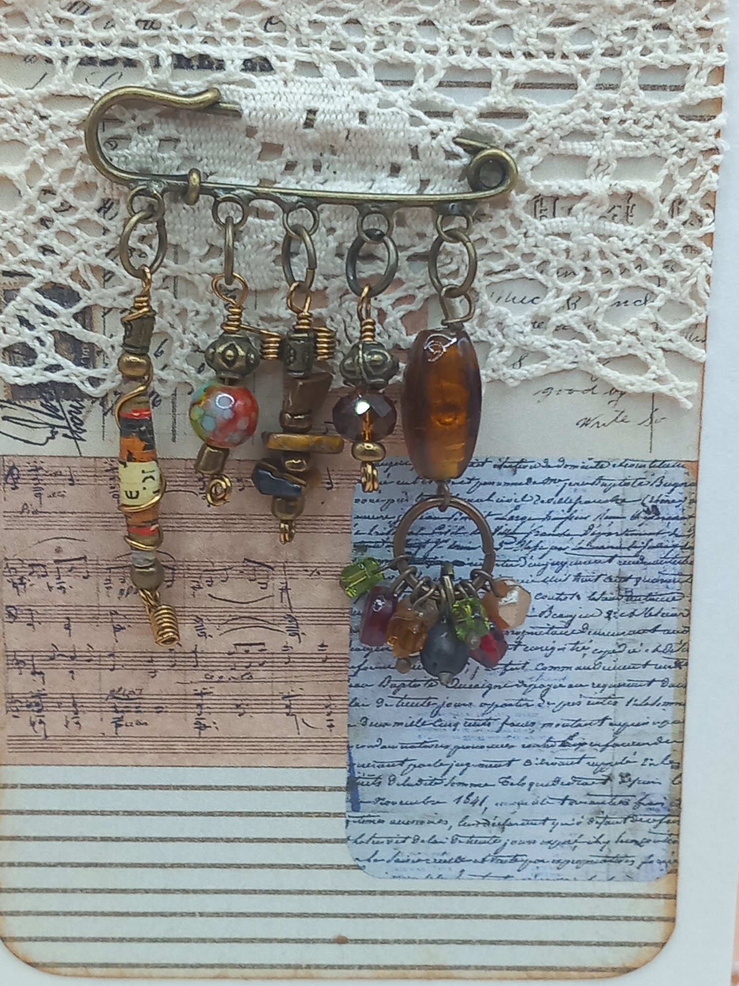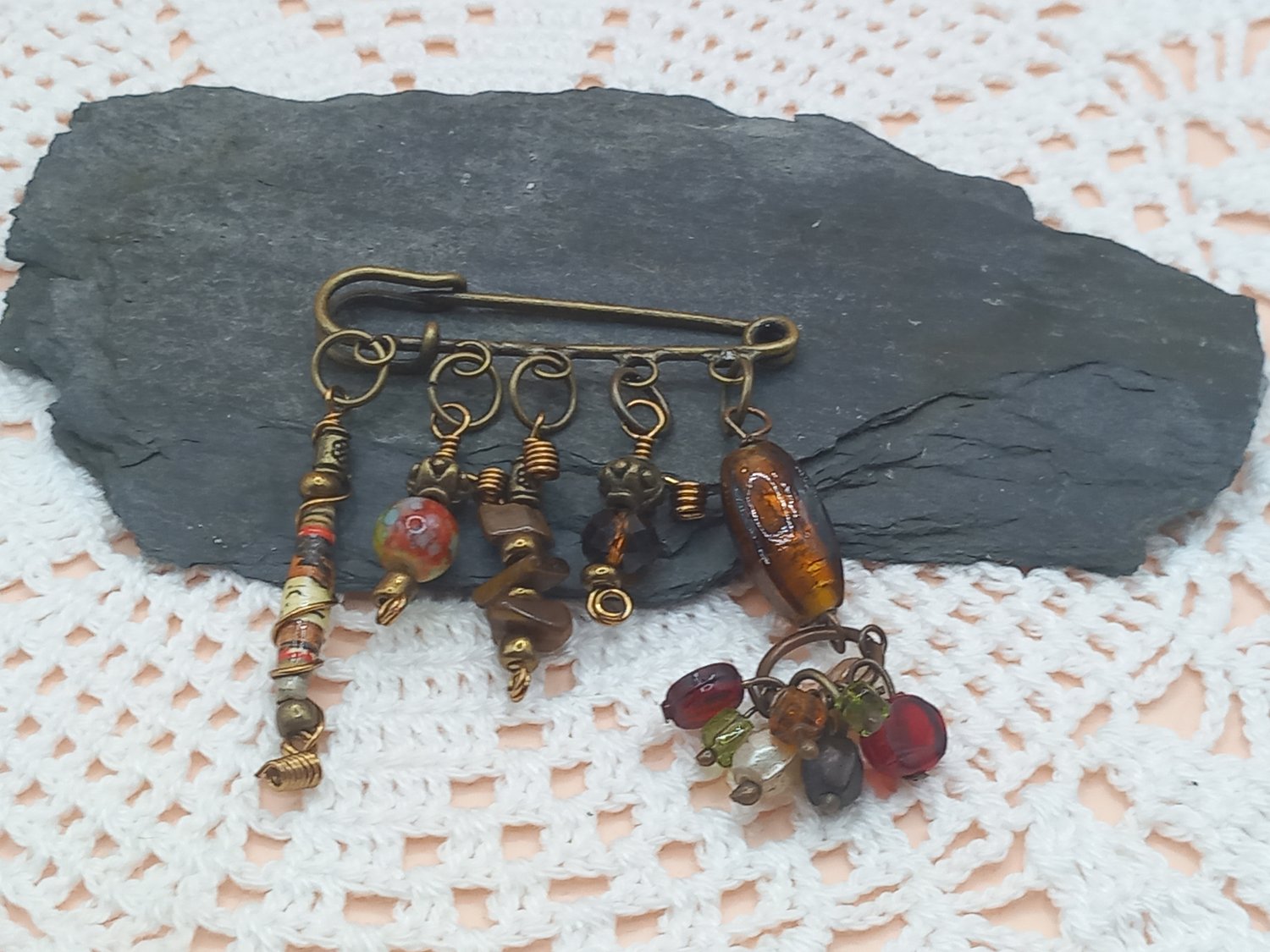 OOAK Amulet Kilt Pin Brooch made with vintage, handmade and natural pieces, wire-wrapped - each one unique