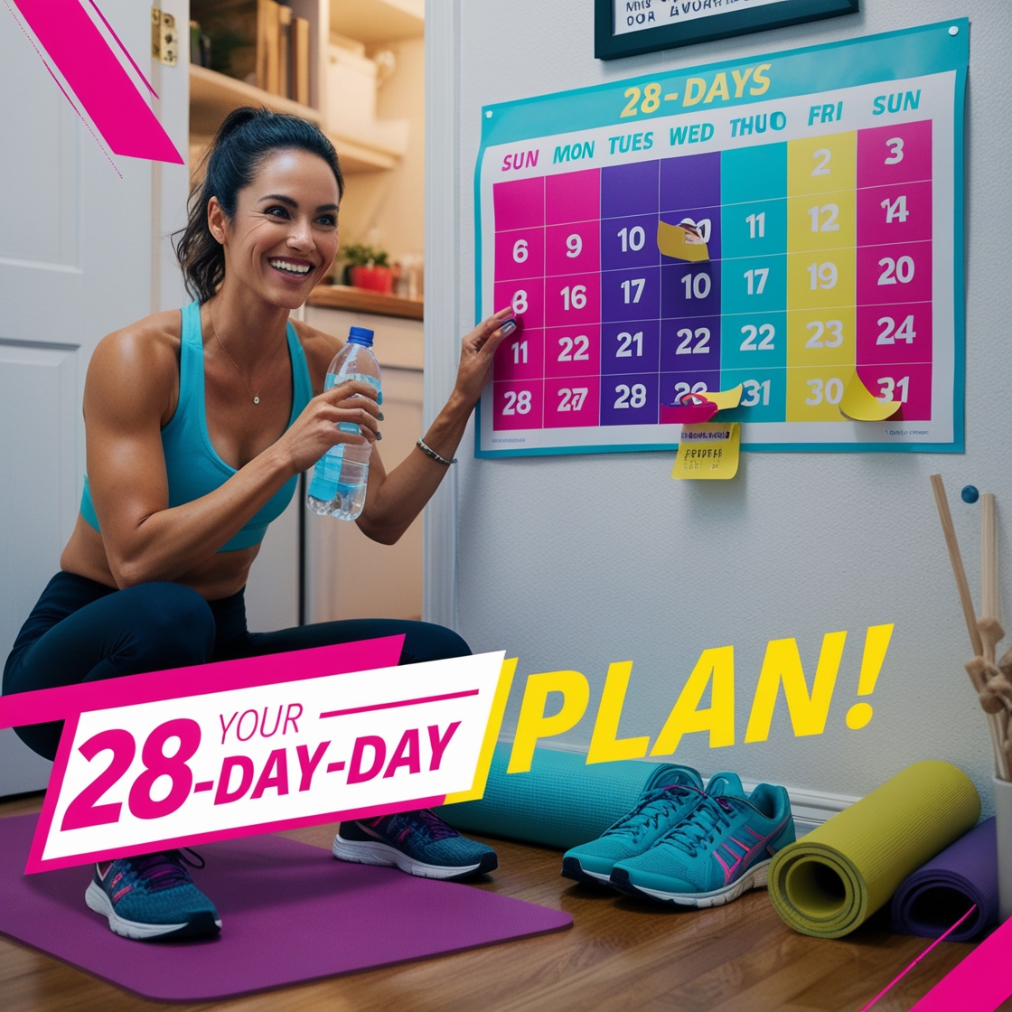 - Your 28-Day Fitness Plan: A comprehensive, easy-to-follow plan with daily routines, varied workouts, and motivational tips. Progress gradually, stay consistent, and feel stronger every week.