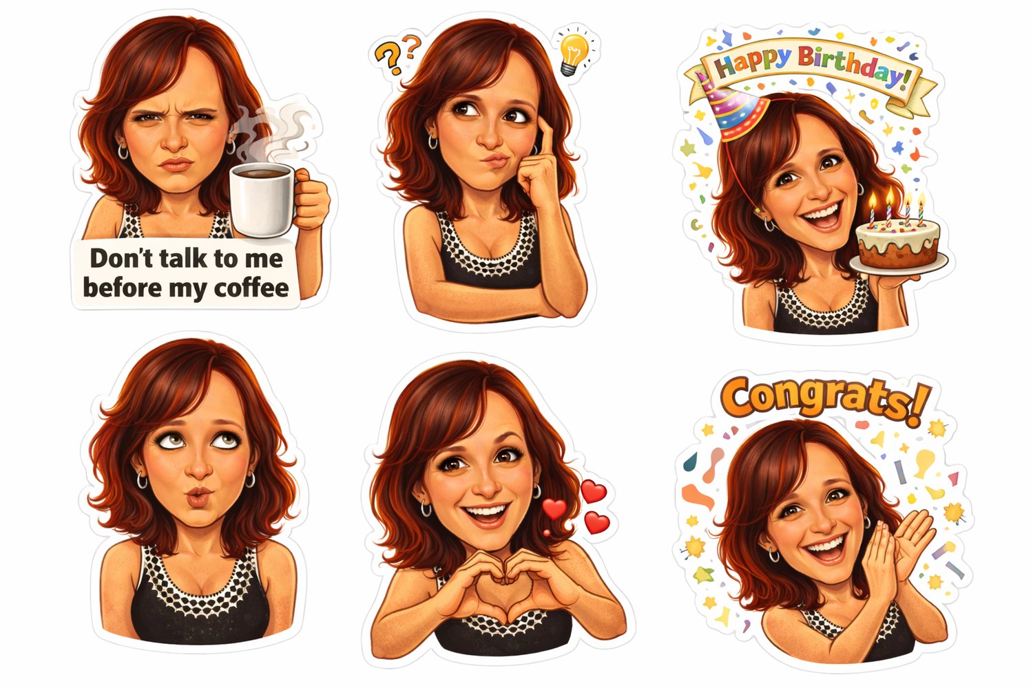 Sussie Stickers - A fun and expressive sticker collection featuring a stylish red-haired woman bringing everyday moods to life! 💃 - Perfect for: • Chat messages & texting • Social media stories • Digital planners • Fun everyday conversations