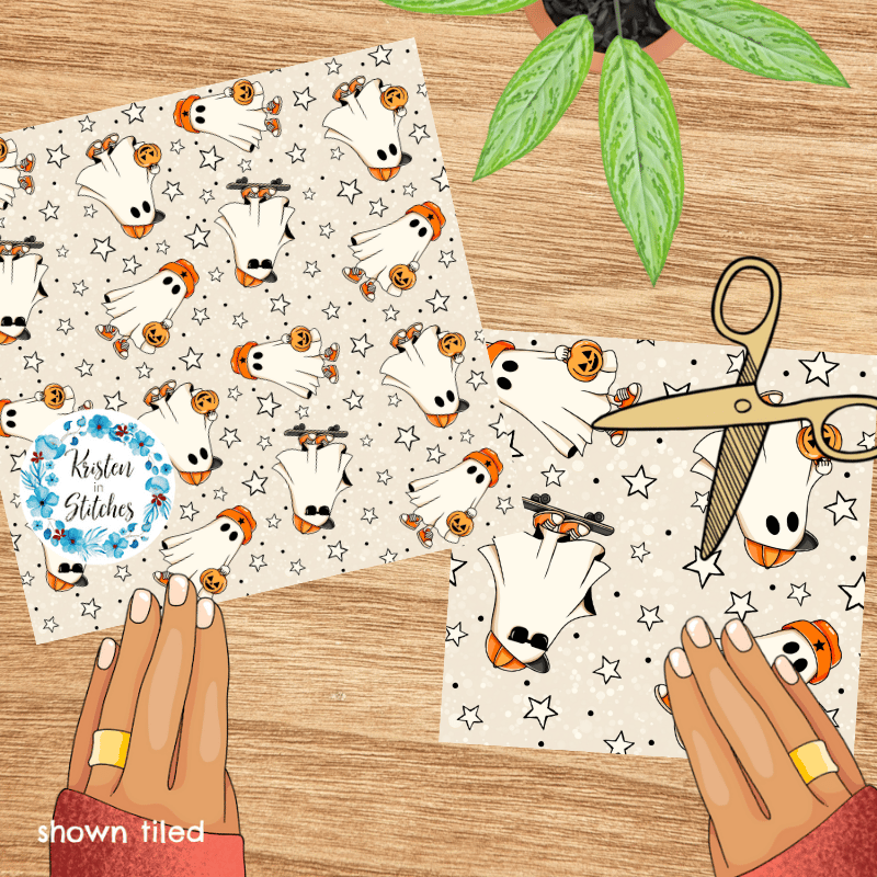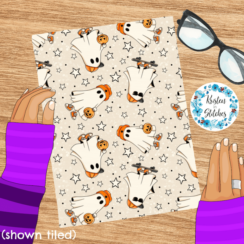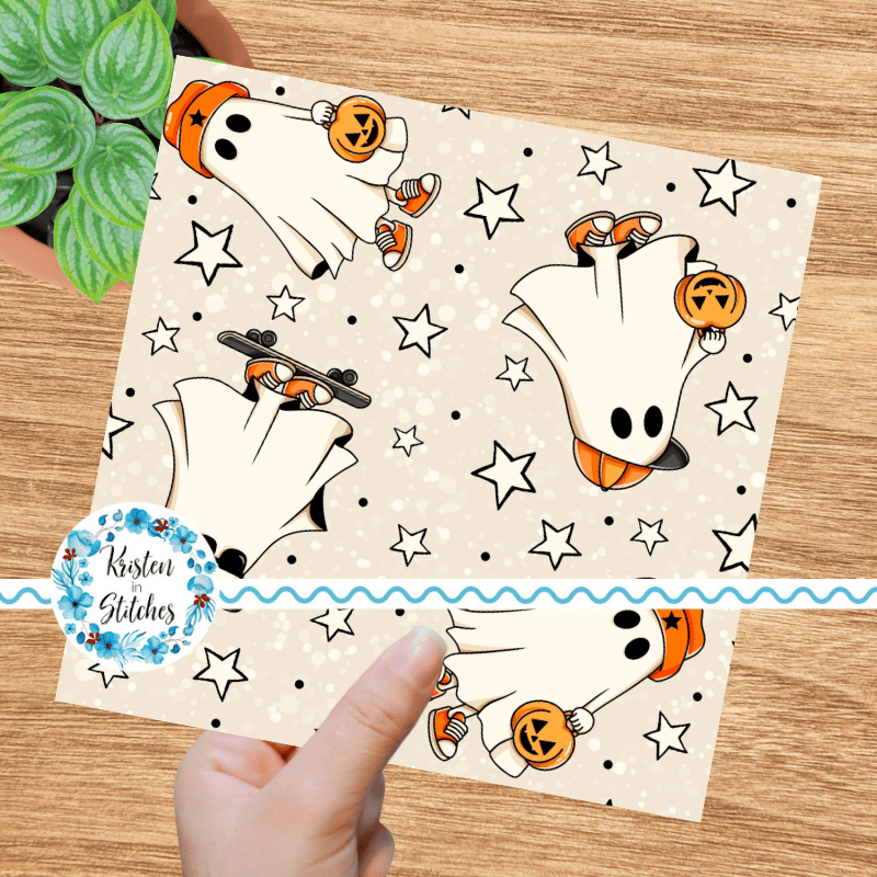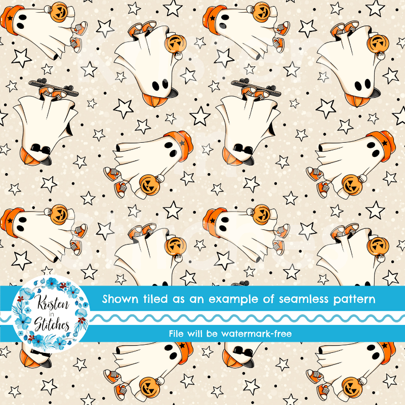Cool Kids Skateboarding Ghosts Halloween Seamless Pattern