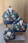 This fabric bundle is designed to go with the Three-On The Side zipper pouch set.