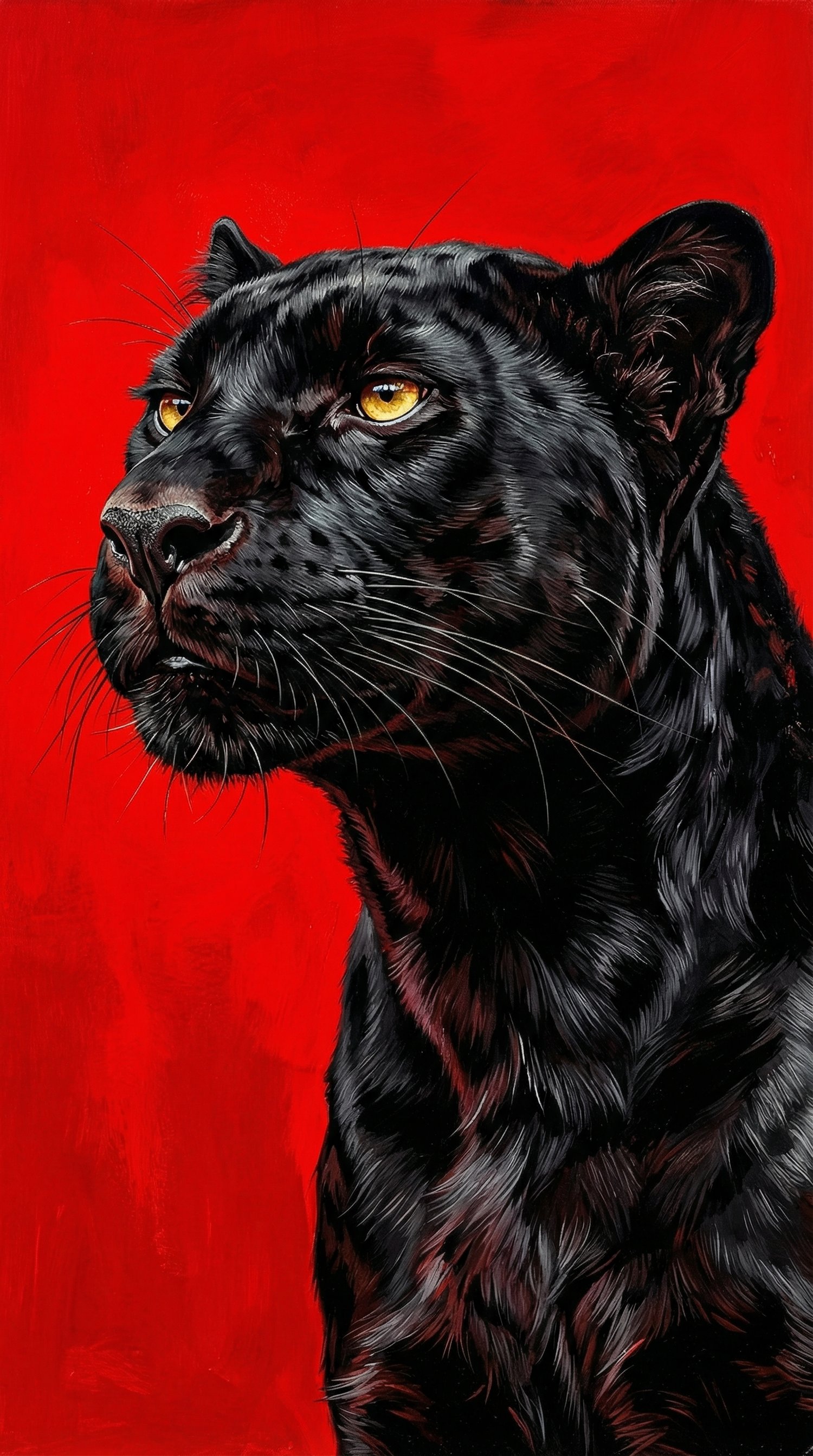 Immerse yourself in a surrealistic vision of raw elegance and intensity with a black panther rendered in striking red and black. The shiny, relaxed fur and subtly defined neck muscles convey calm power, while the panther’s raised head and alert posture add a sense of presence and intrigue. Sharp contours, realistic textures, and dramatic light-and-shadow play enhance the vivid, high-impact composition. Perfect for creators seeking bold, professional-quality imagery that combines surrealism, elegance, and visual drama.
