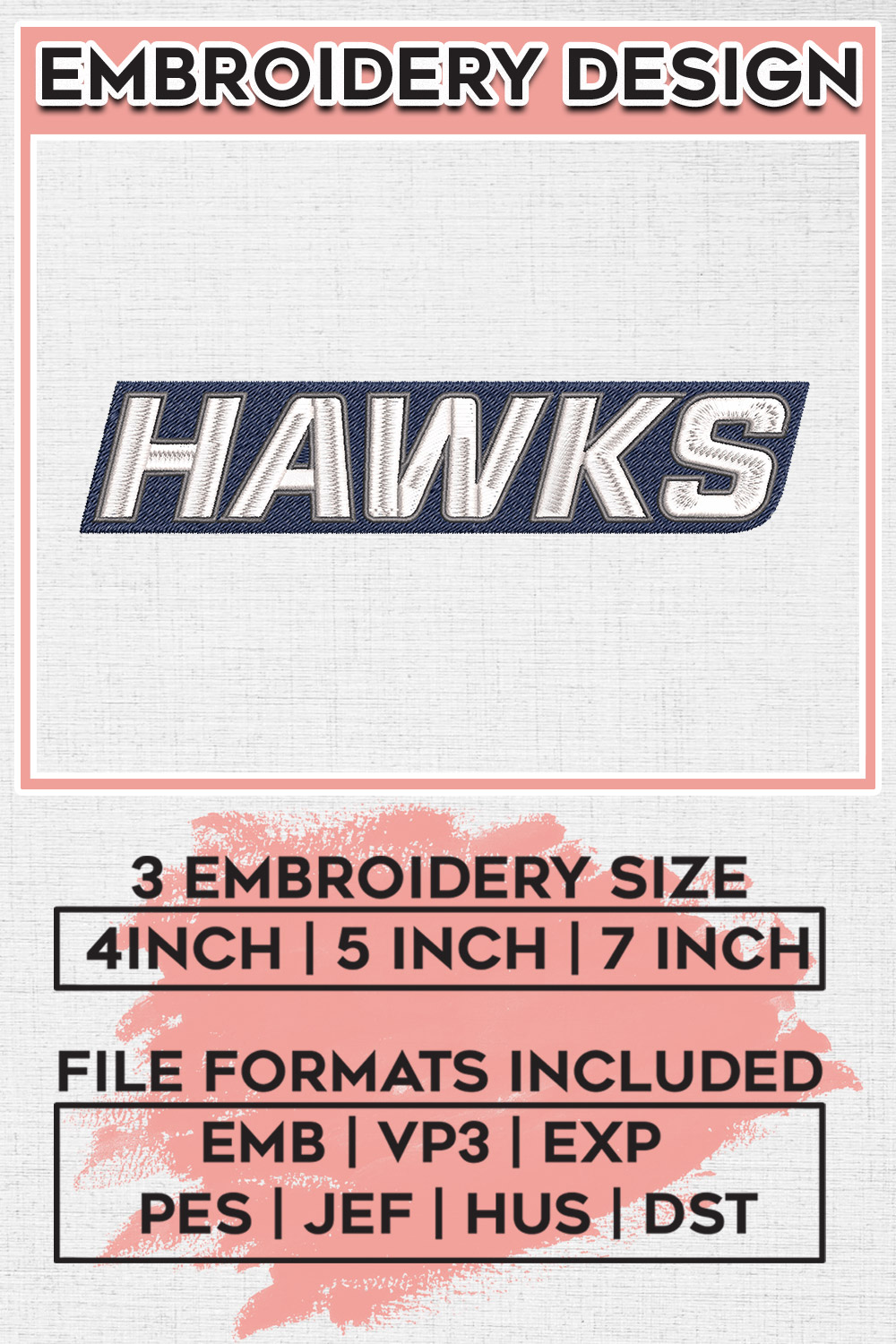 NCAA Hawks Football Team Writing Logo Embroidery Designs, NCAA Monmouth Hawks Wordmark Embroidery Designs, NCAA Logo embroidery designs, Digital Download