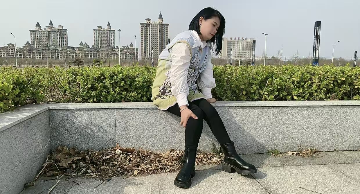 Carrie, the polio lady, going down the stairs on crutches — her leg clearly weak, slowly moving step by step, really attractive to watch. Then she gets straight into the car and drives off. That disabled leg in black boots look is very appealing for everyone.