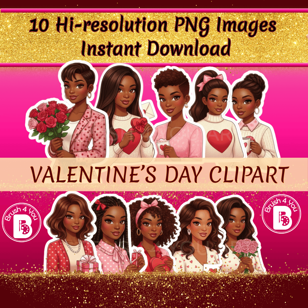 Valentine's Day Clipart Women Sticker Set 1 (10 Images)
