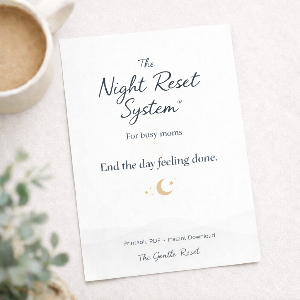 The Night Reset System is a gentle 3-phase evening framework designed to help busy moms close the mental loop of the day, reset just enough of their space, and finally feel done — in just 10–15 minutes.