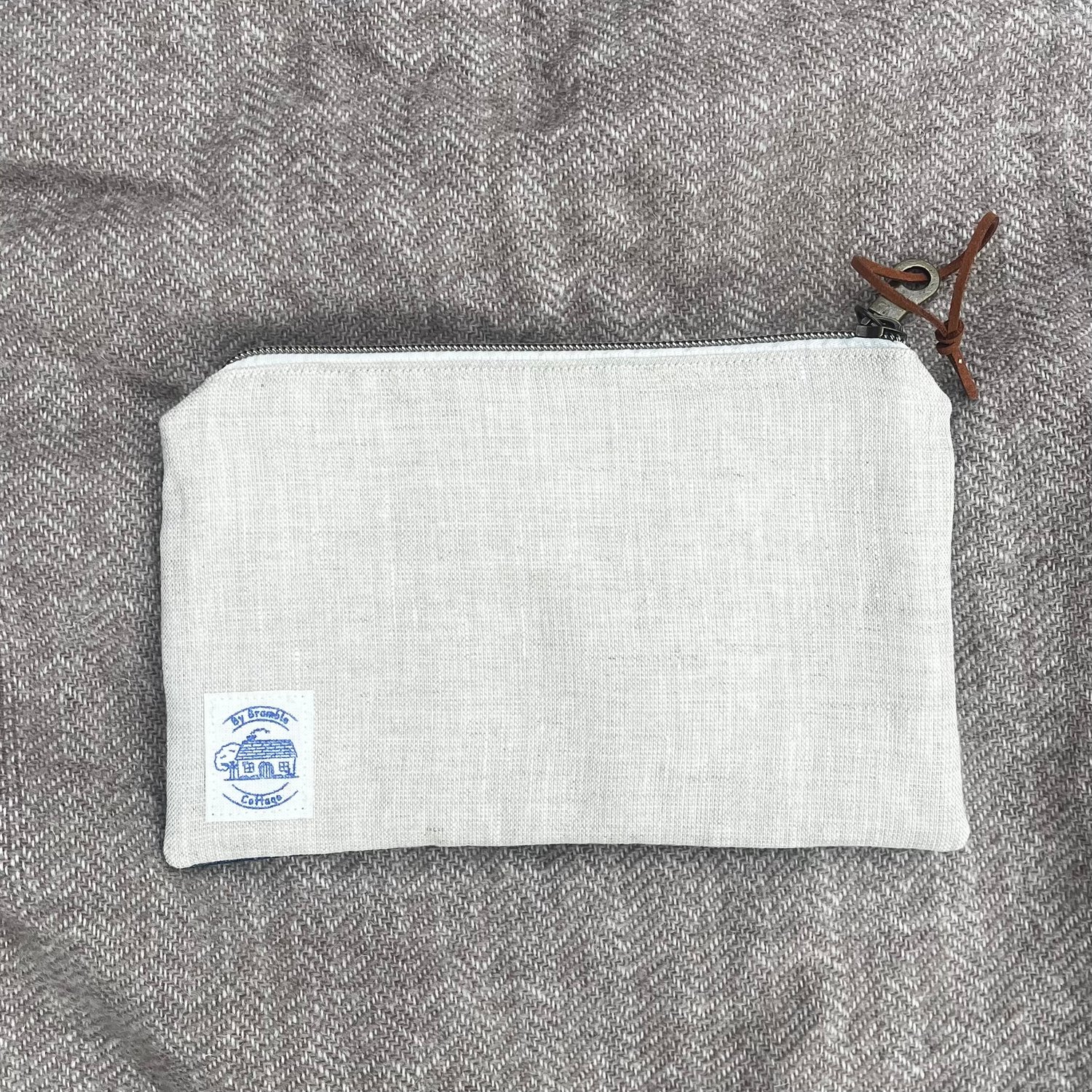 Perfect for knitting notions, pens, herbal treasures, or everyday carry, these pouches are fully lined, interfaced for structure, and finished with a sturdy zip and leather pull. The reverse of the pouch is made with a plain linen with a Bramble Cottage handmade logo tag