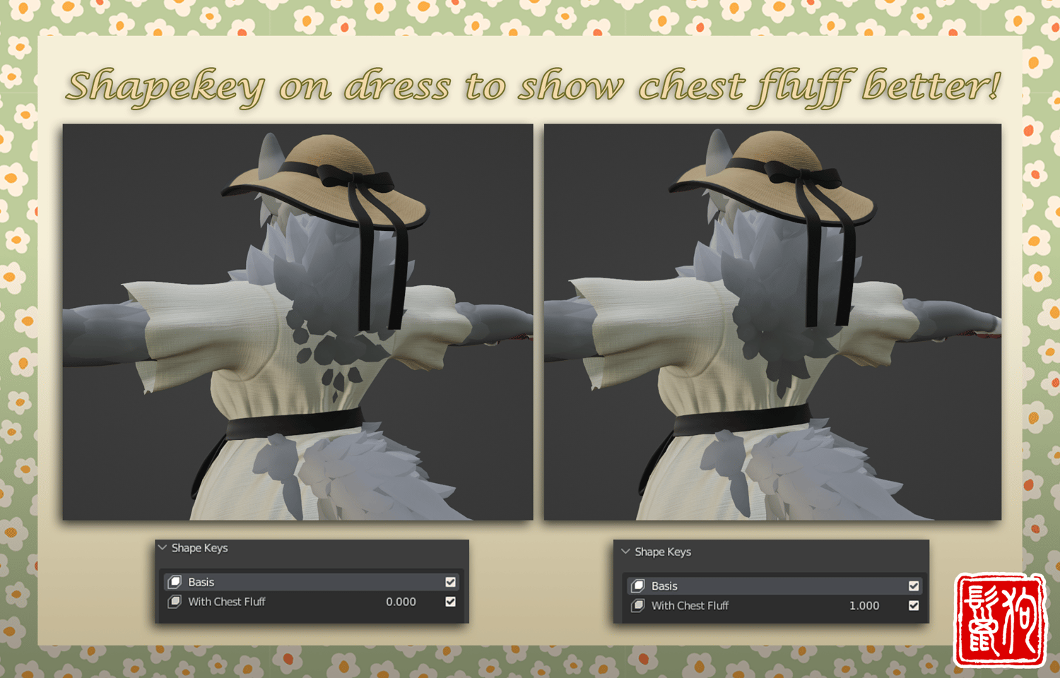 - There's a shapekey on the dress to fit Mamagens with Chest fluff better!