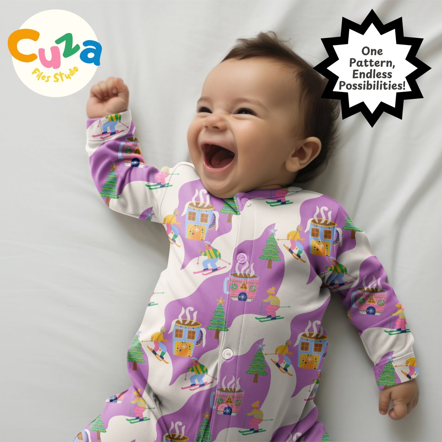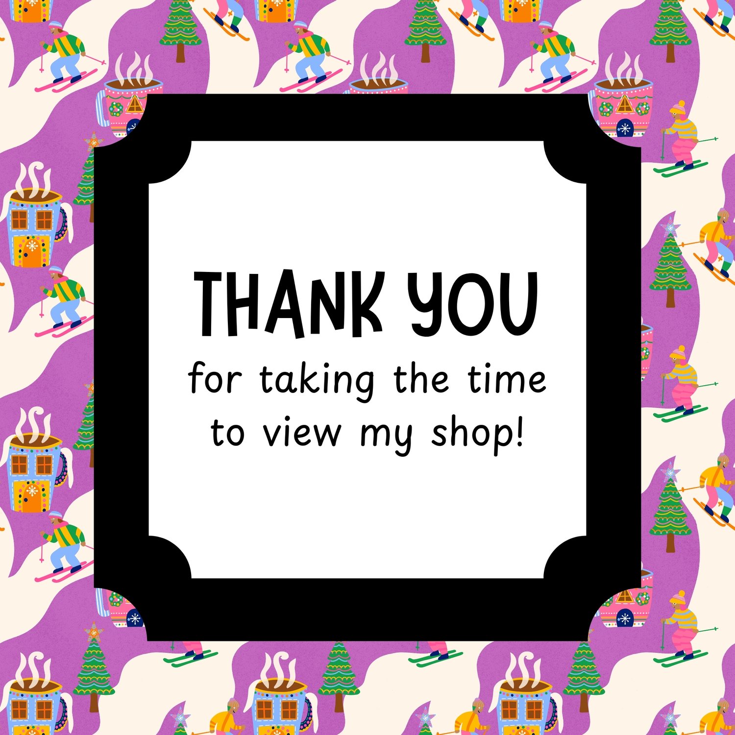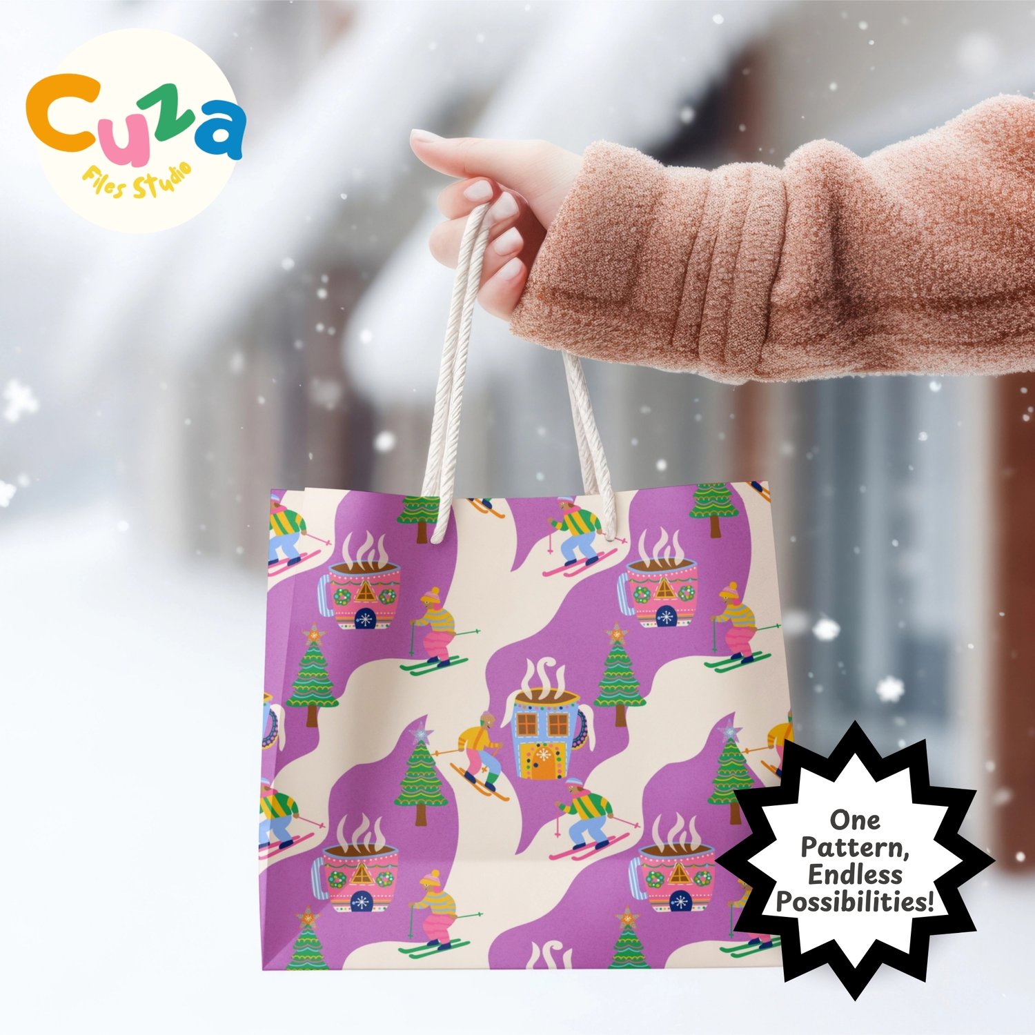 My playful pattern combines nostalgic christmas skiing with a beloved hot cocoa making it perfect for projects that celebrate the fun side of the holidays and bring a joyful feel that kids and adults will love.