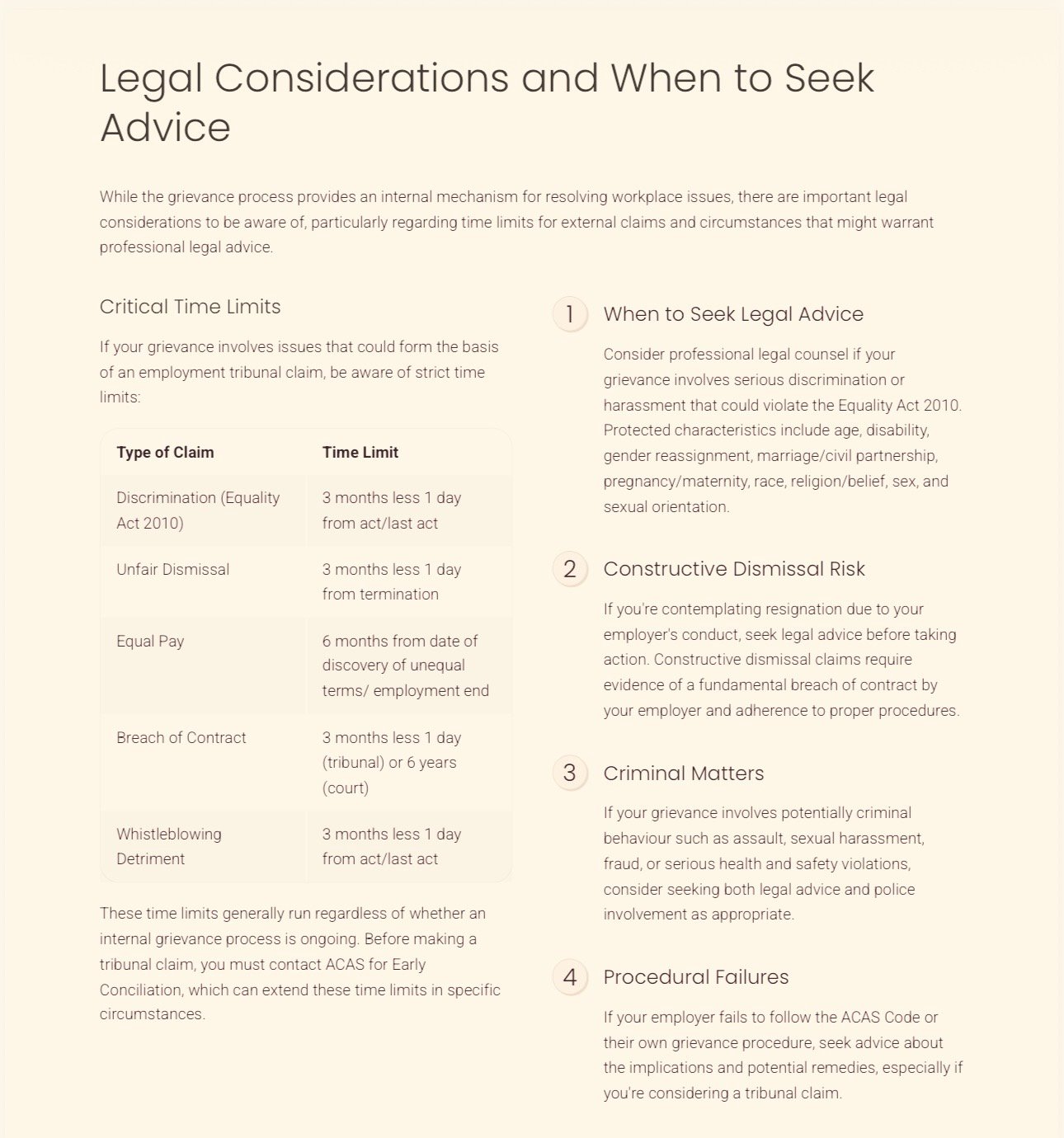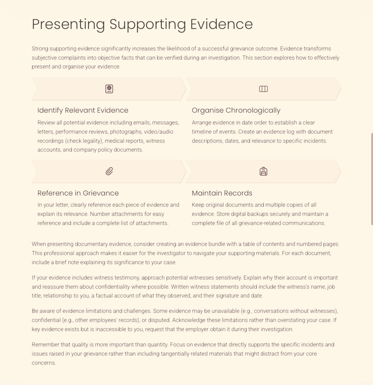 You'll have a grievance letter that meets every ACAS Code requirement — the thing that makes your employer legally obligated to investigate properly. You'll know exactly how to describe what happened in a way that builds a case, not just vents frustration. You'll have your evidence organised so nothing gets dismissed. And if they reject it? You'll have the appeal ready.