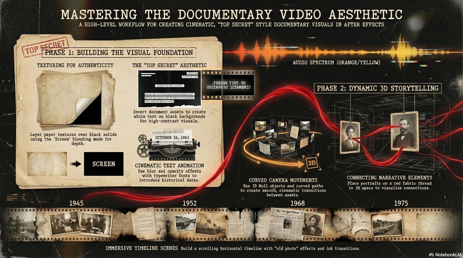 This guide teaches you the complete cinematic workflow to build a documentary sequence that looks like a real production.