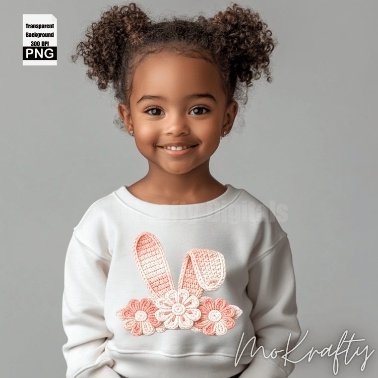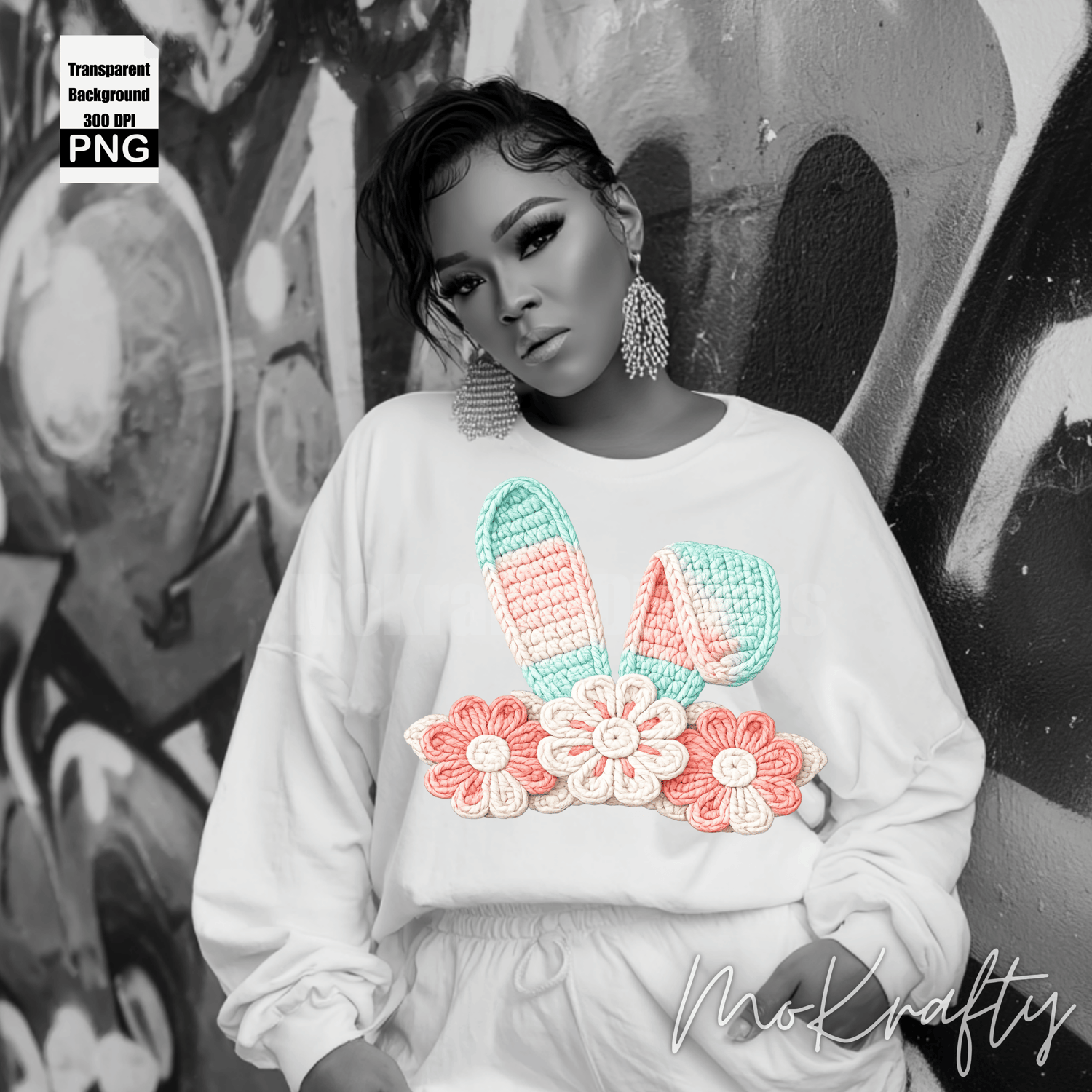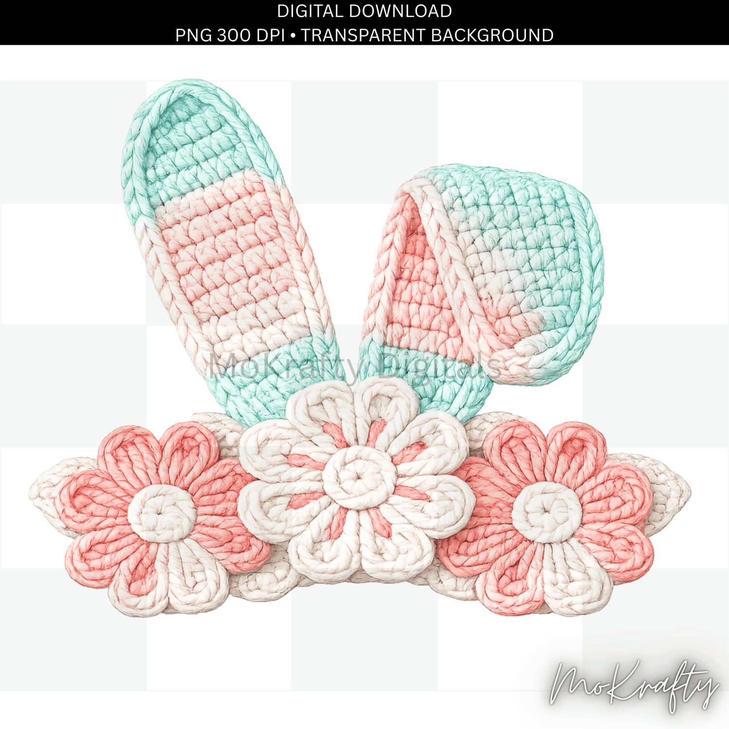 Crochet Bunny Ears PNG Floral Teal Easter Sublimation Design Boho Spring Digital Download