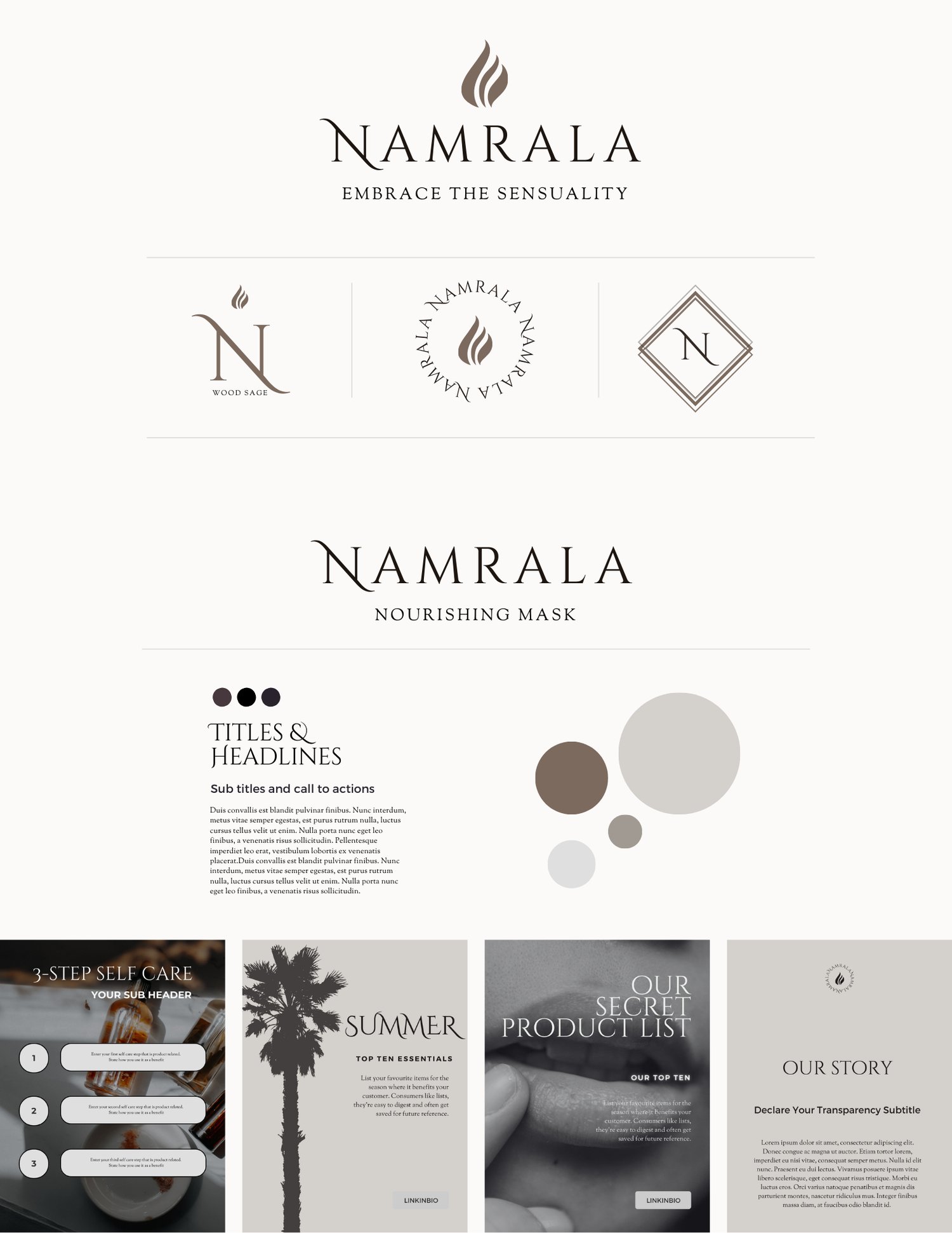 Elevate your clean beauty brand with the Namrala Semi-Custom Brand Suite — a cost-effective branding solution designed for indie skincare founders who want professional, cohesive visuals without the full price tag of custom design. Created for natural, organic, and sustainable skincare lines, this suite balances elegance and minimalism with earthy, wellness-inspired tones.