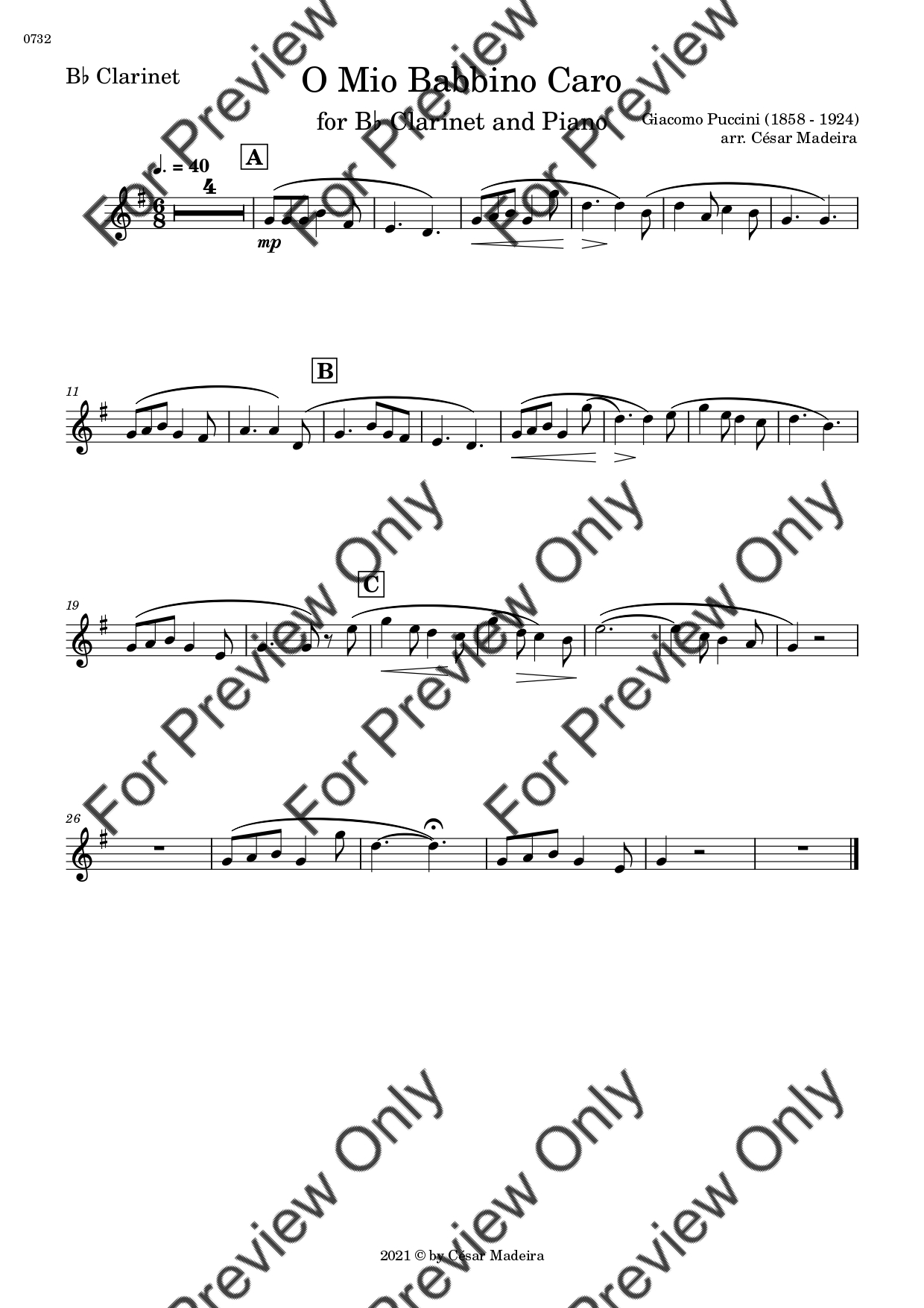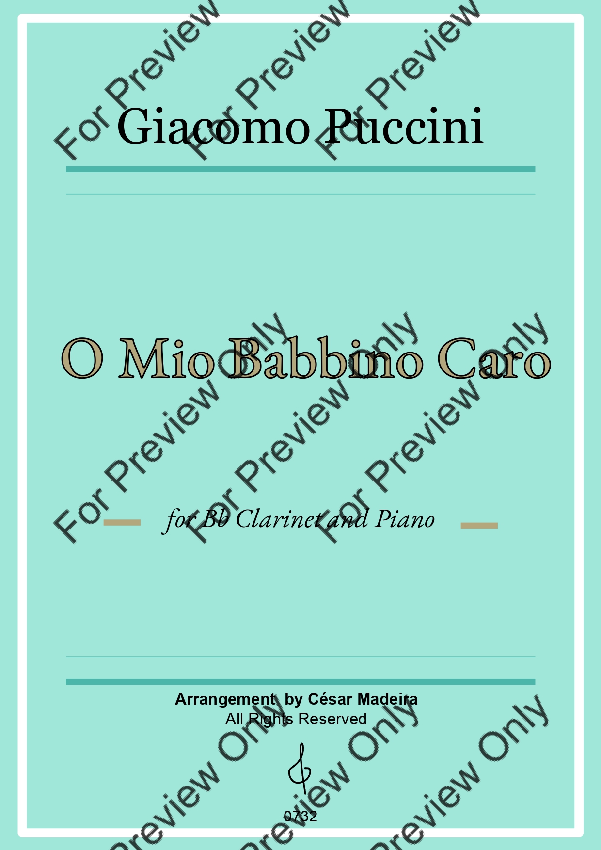 O Mio Babbino Caro (from Gianni Schichi) by Giacomo Puccini. Arrangement for Bb Clarinet and Piano. With Full Score and Individual Parts. Have fun!