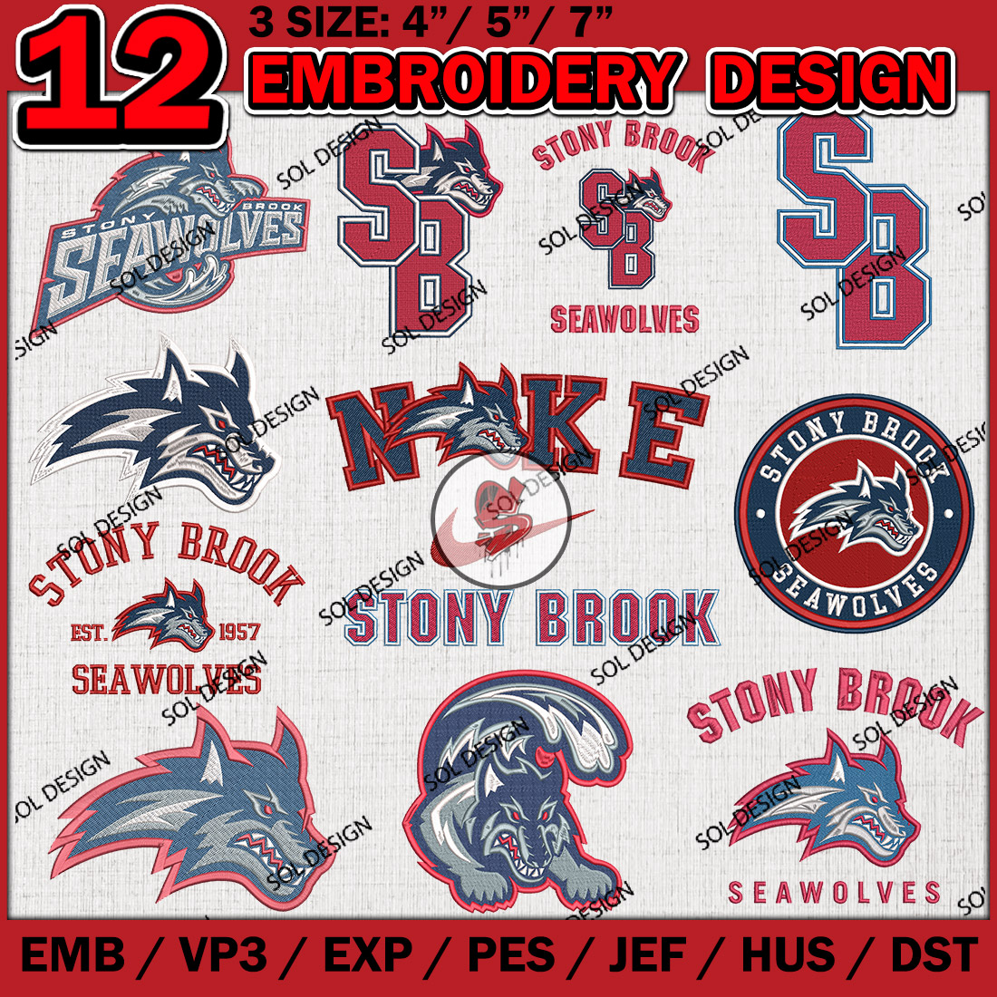 12 Stony Brook Seawolves Bundle Embroidery Files, College Football Embroidery Designs, NCAA Stony Brook Seawolves Machine embroidery Design Bundle, Ncaa Stony Brook Logo bundle, Digital Download