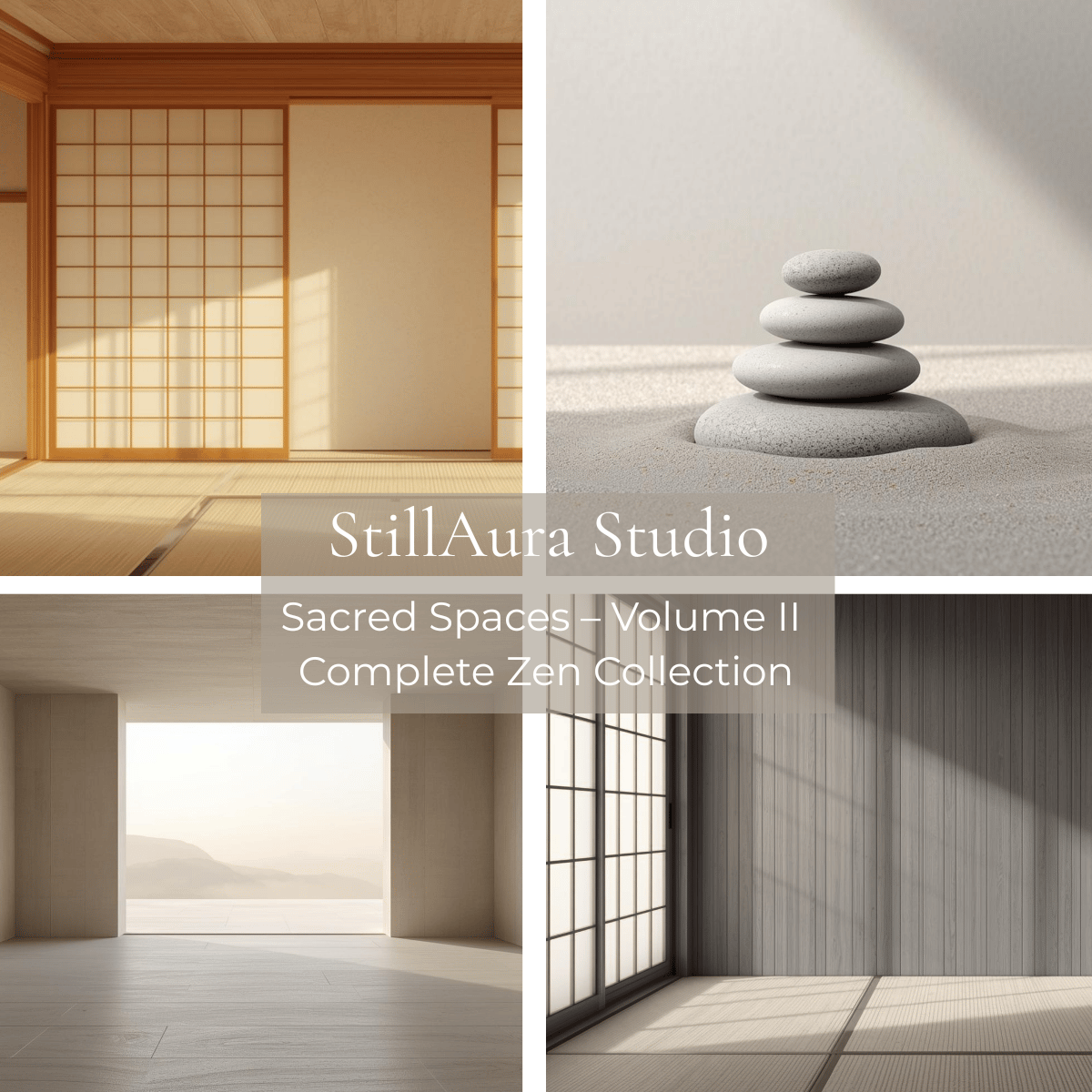 Sacred Spaces Collection – Volume II | 4-Pack 4K Minimal Japanese Zen Interior Desktop Wallpapers for Mac & PC