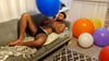 For this video I asked to Diego to burst all the balloons in the room. For this job he choose to use the knife.