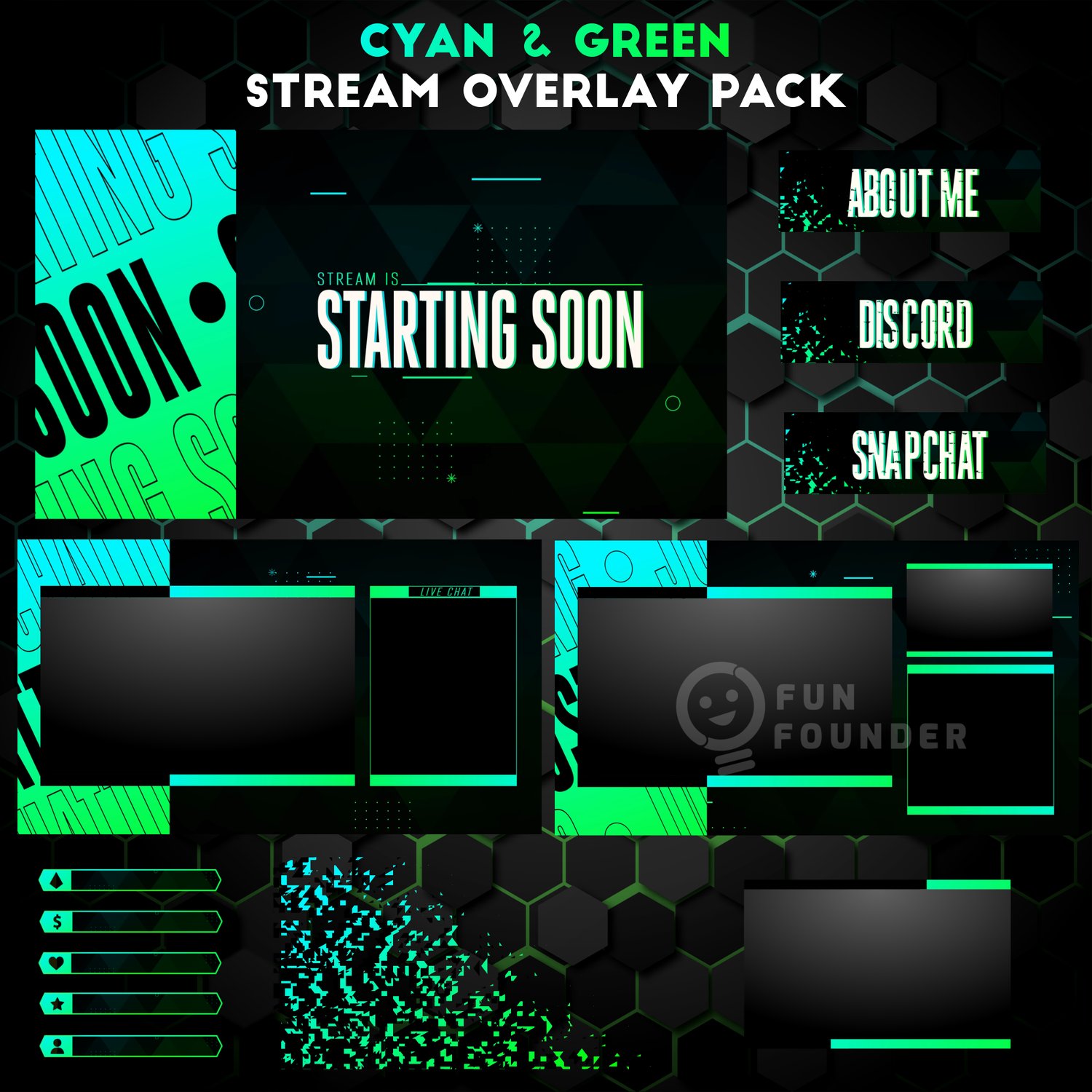 Twitch Overlay Package | Cyan and Green Animated Stream Overlay Pack | Polar Stream Overlay | Twitch Animated Stream Overlay Package | Twitch Panels | Youtube Stream Overlay Pack