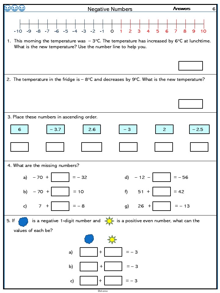 Children are challenged by word problems such as finding the difference between temperatures or missing numbers.