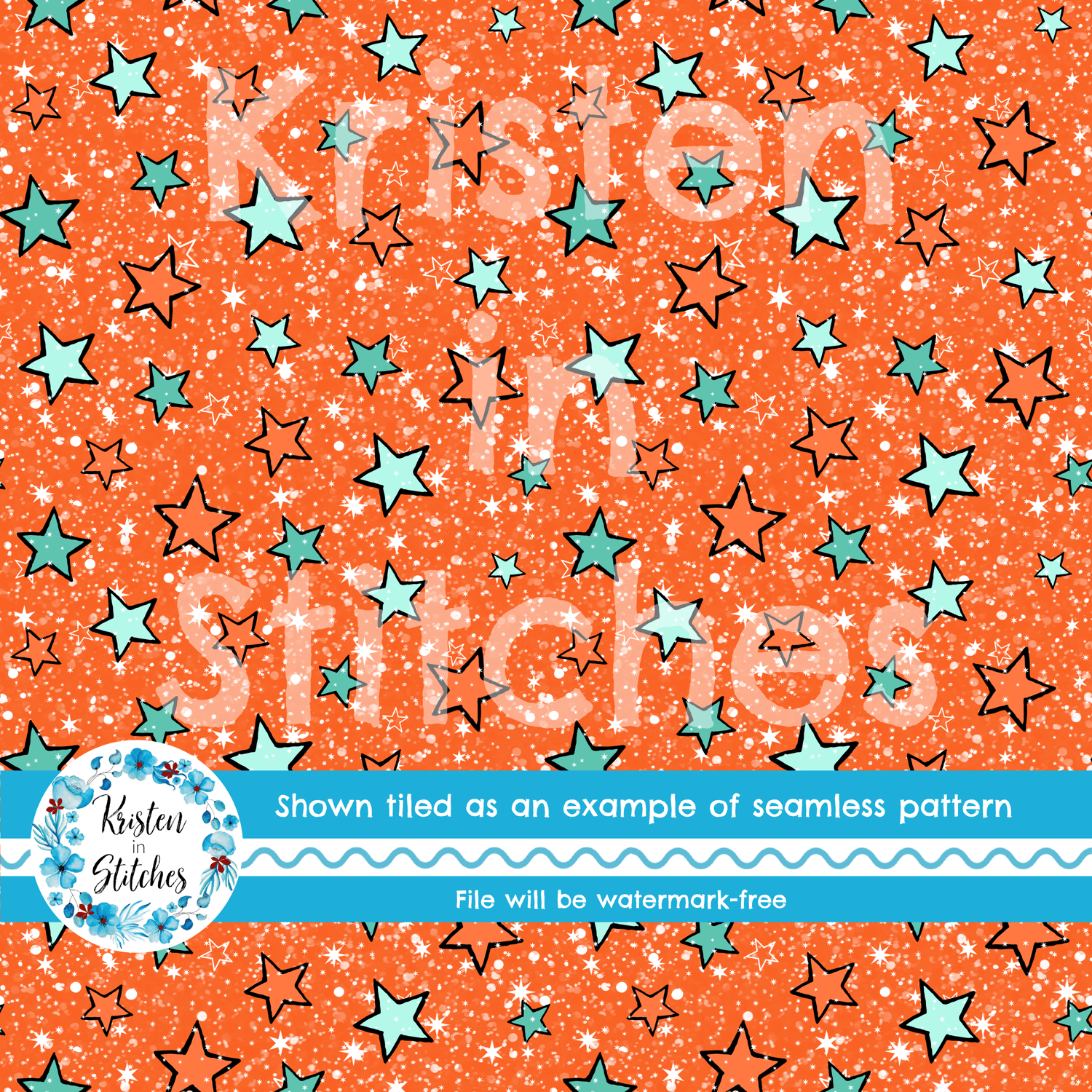 Showgirl Stars Orange Coordinate Seamless Pattern