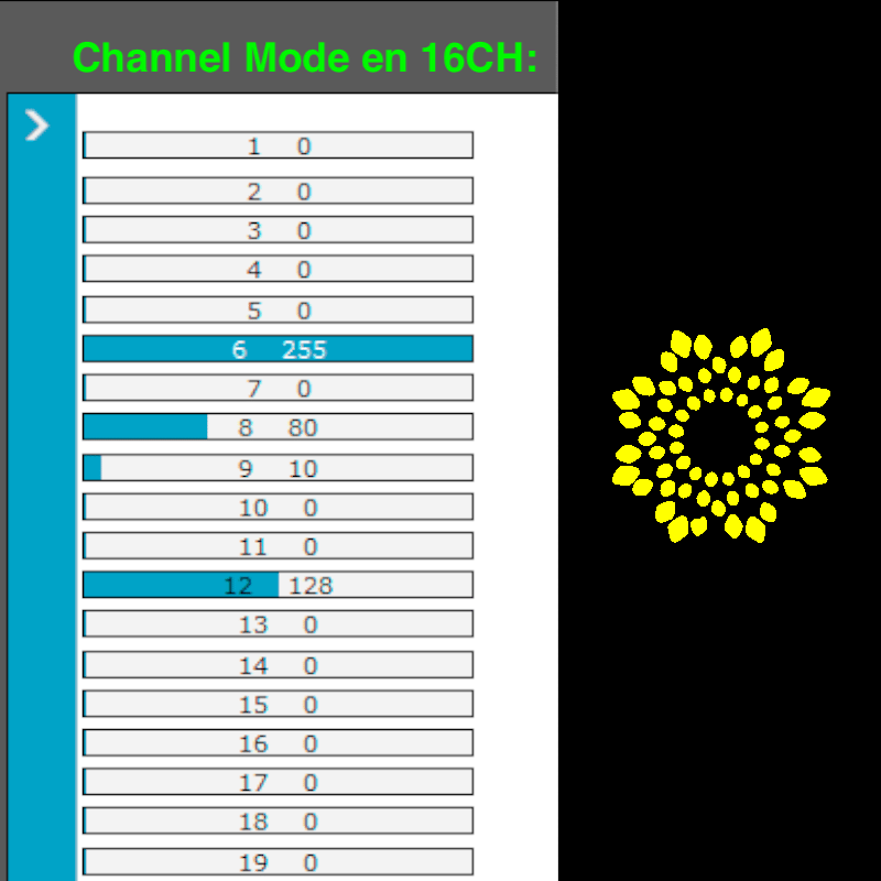 - Realizada para el modo de 16CH, con los Gobos y Colores propios del equipo.