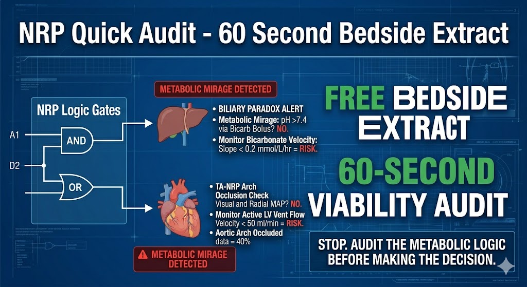 "This is the official 2-page Bedside Extract from the NRP Black Book 2026. Designed to be laminated and kept on the pump, this tool forces a logic-gate audit of marginal organs to prevent ITBL and identify 'metabolic mirages.'