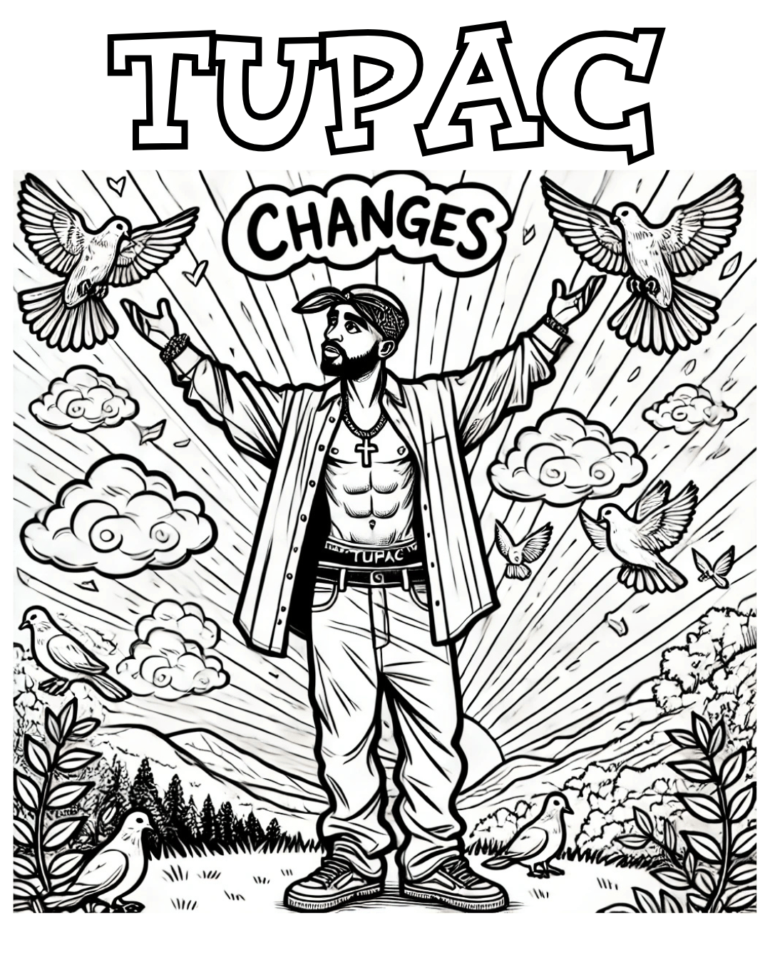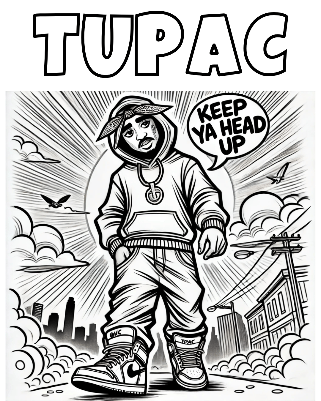 Tupac Coloring Pages | 2Pac Printable Hip Hop Art | Rap Legend Coloring Pages | Instant Digital Download