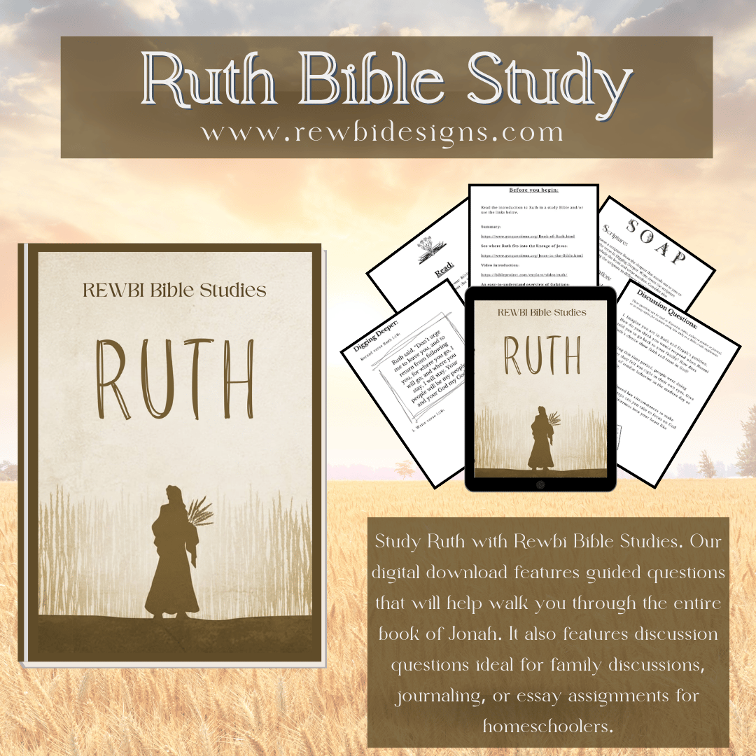 This study guide is not only designed for those who are seeking a deeper understanding of Ruth but is also perfect for high school homeschoolers who want to supplement a Bible credit. (Our discussion questions can be used as essay questions for homeschoolers.)
