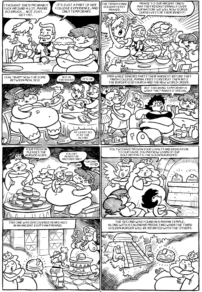 It's about an alternate reality Earth and the Bonded States of America, and the history of the Gods of Fast Food. Or the Burger Gods. Or ancient, advanced aliens.