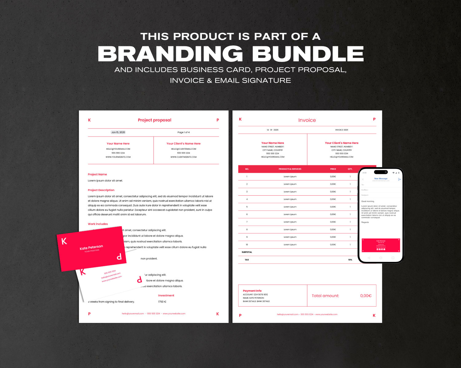 This business card template is part of a coordinated branding bundle designed for professionals who want a consistent and high-quality look across their business documents. The bundle includes: business card, invoice, project proposal, and email signature template. The bundle is not included in this listing.