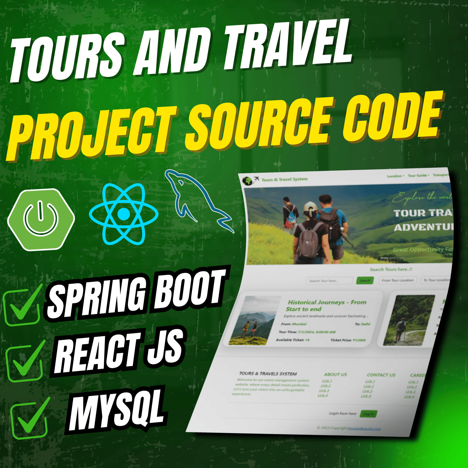 Build a complete full-stack Tours and Travels Management System Project Source Code using Java Spring Boot (backend), React JS (frontend), and MySQL (database) for your final year, internship, or capstone project.