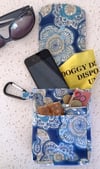 Digby will hold your cell phone, wallet, keys, credit cards, pet treats, a roll of pet waste bags, and other small valuables so that you can go out hands-free! Attach it to a belt loop, dog leash, diaper bag, stroller, back pack, or anything else you wish. The pattern includes instructions for making a detachable, adjustable shoulder, neck or waist strap. The strap can be cut using the included pattern piece or it may be cut by dimension. You also have the choice of using 1" wide webbing in place of making a fabric strap.