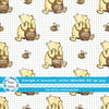 Classic Winnie the Pooh Seamless Pattern, Honey Pots and Bees Sage Green Dots