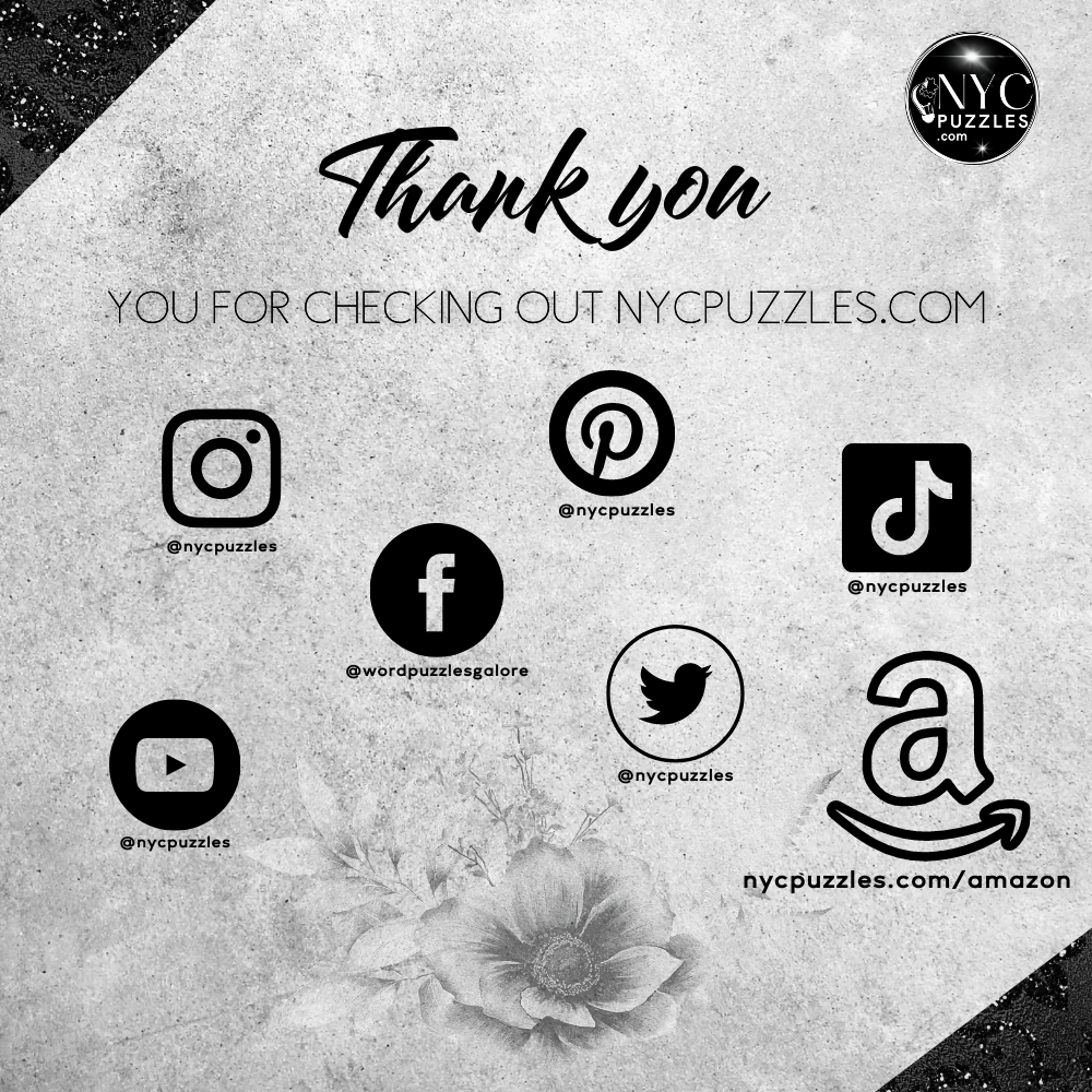 The viewing, printing, or downloading of any content, graphics, or templates from NYC Puzzles (nycpuzzles.com) is solely for your own personal use and not for republication, distribution, sale, or other use. No part of any content, description, or template may be reproduced in any form.
