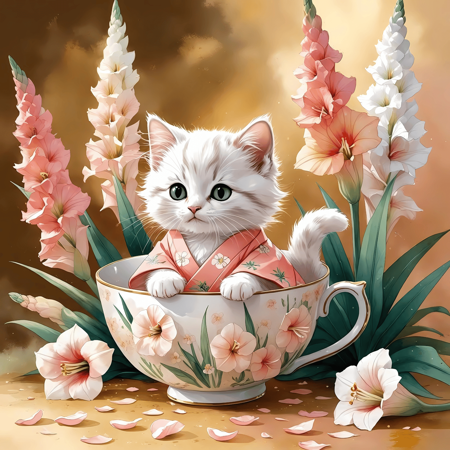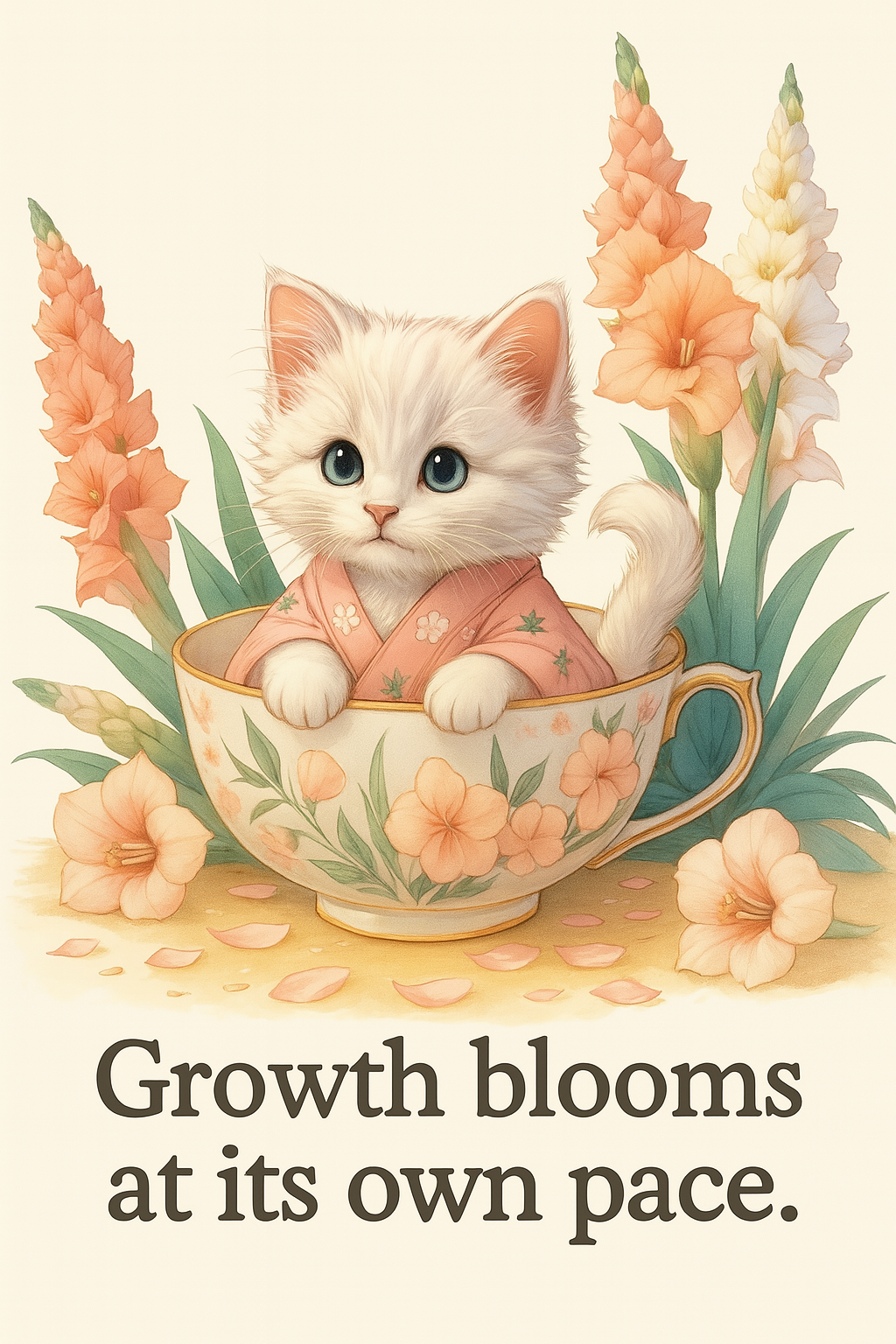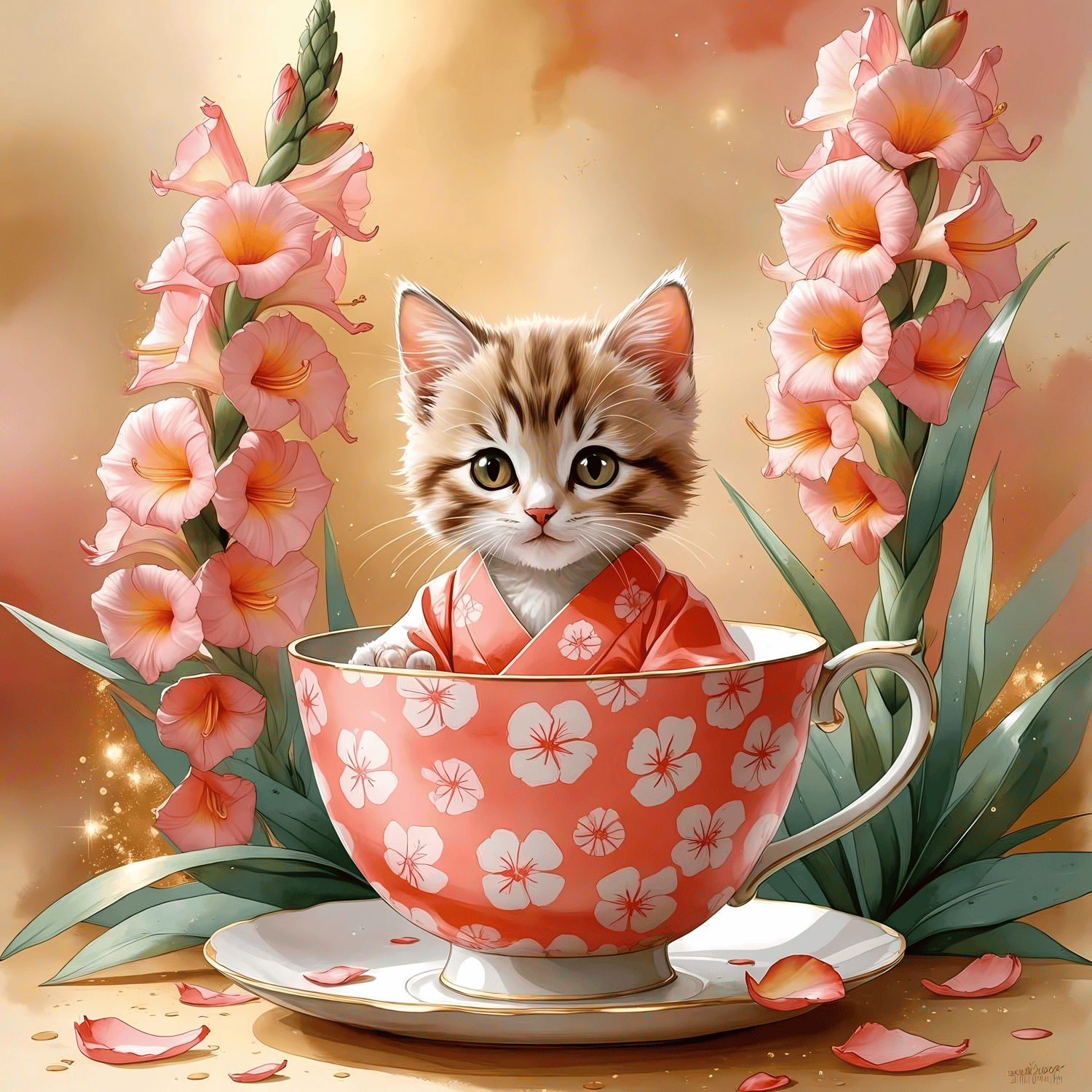 As a special treat, your purchase comes with an exclusive Gladiolus Kitten bonus illustration — featuring our fluffy friend in a charming peach kimono and teacup. Perfect for journaling, printing, or simply brightening your day!