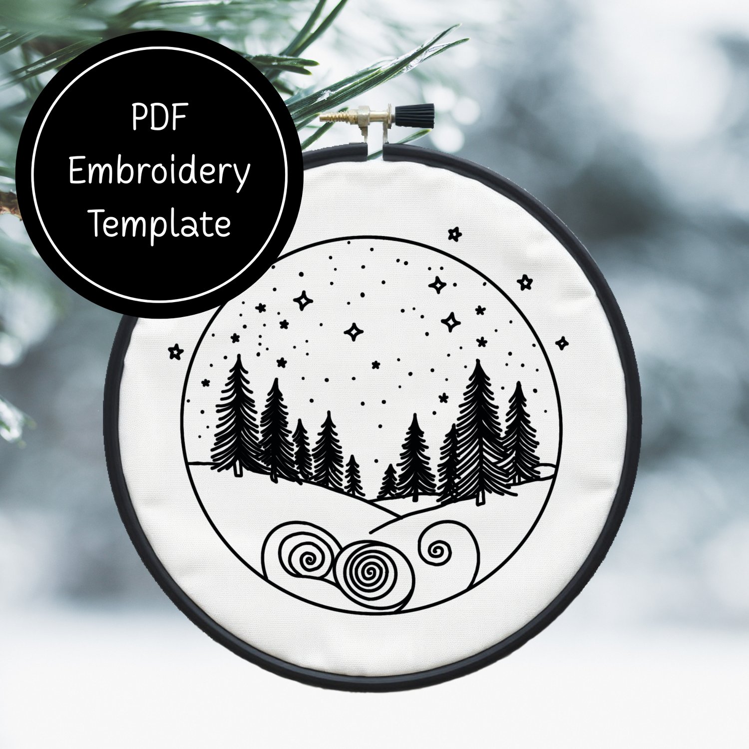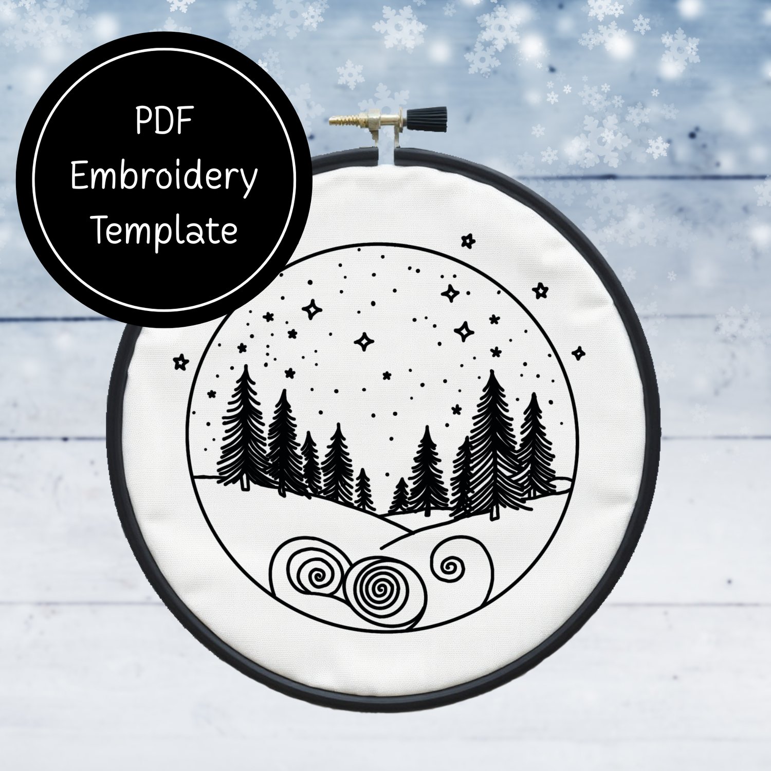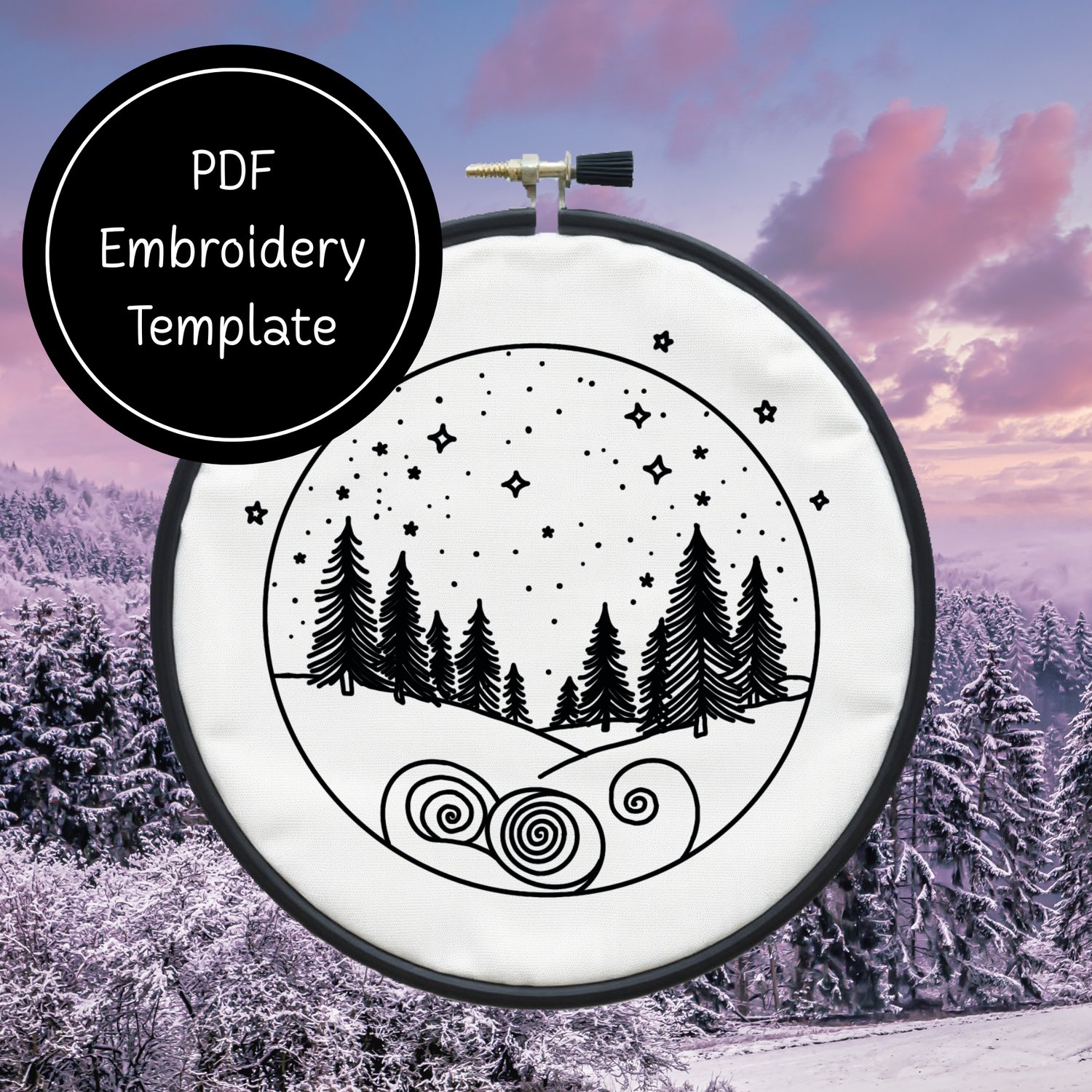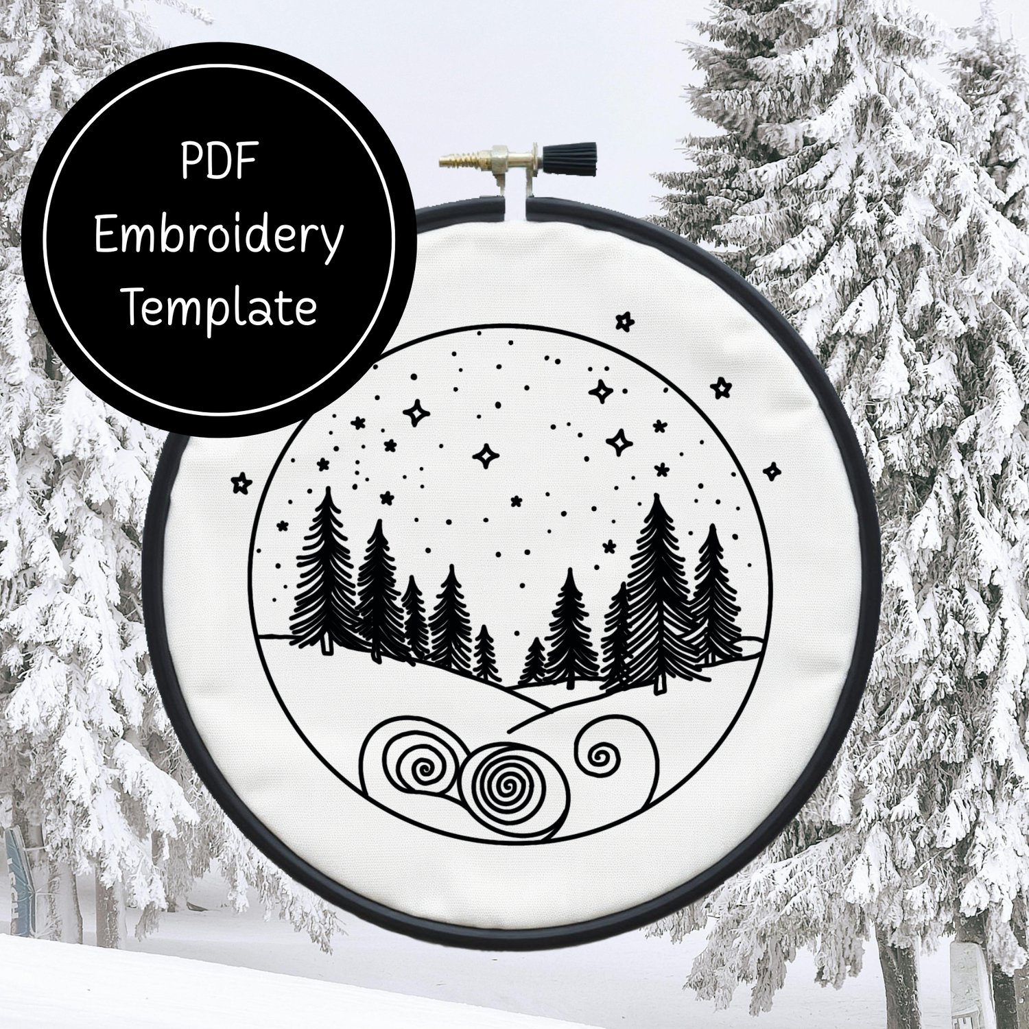 Winter Pine Trees Hand Embroidery Template - Instant Download