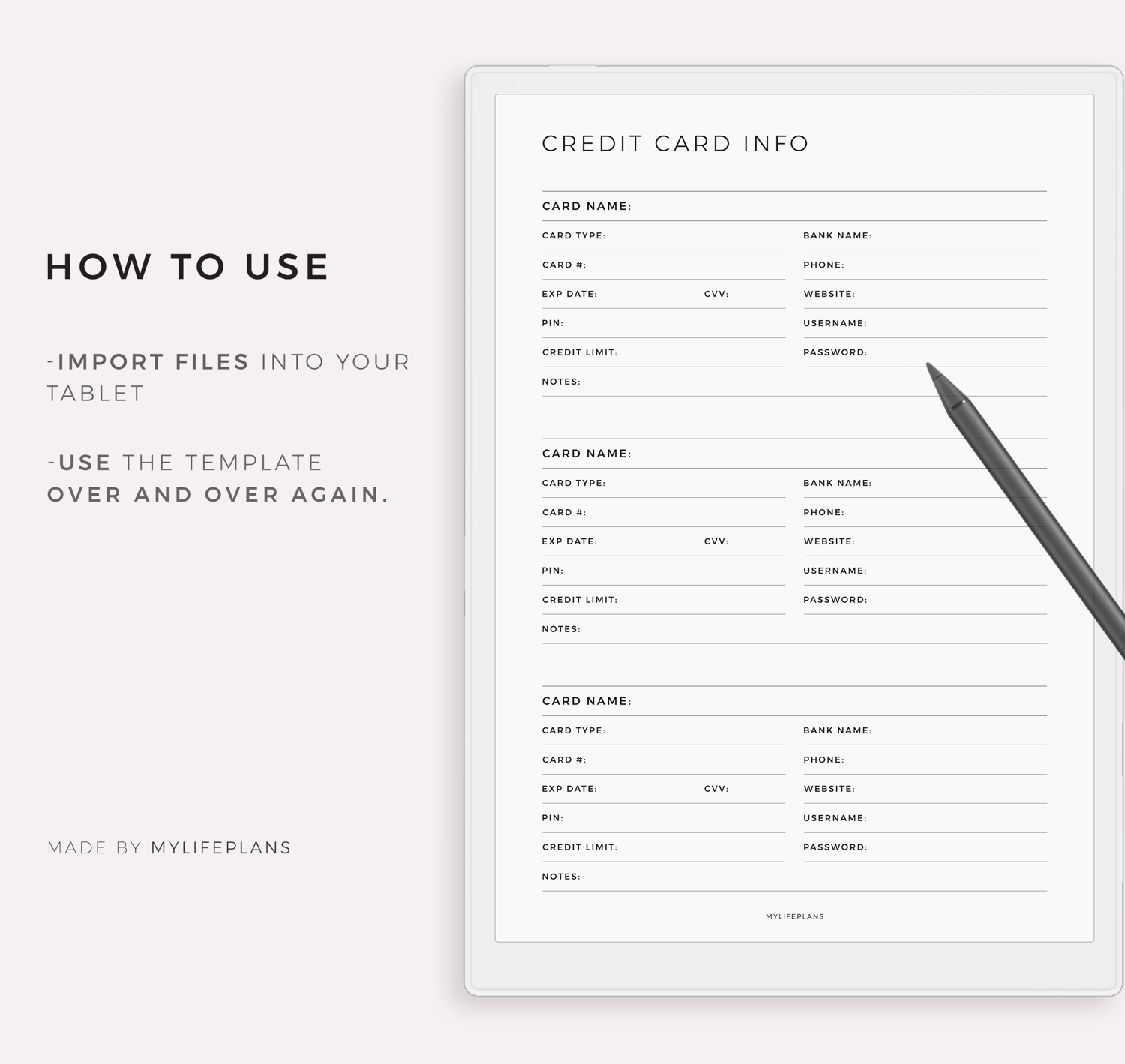 Credit Card Tracker Tempalte for Remarkable, Supernote, Kindle Scribe, Boox, Kobo