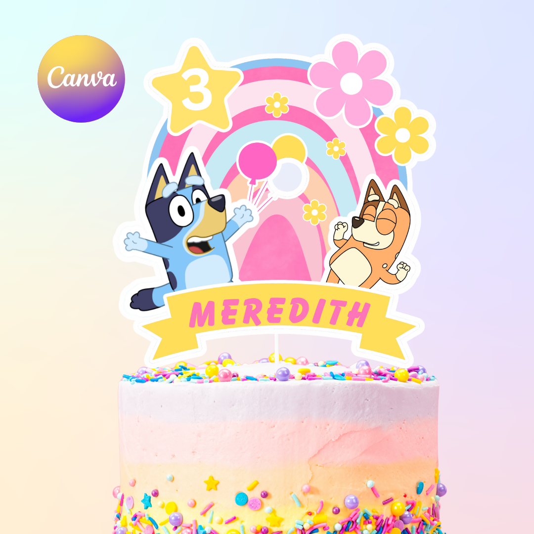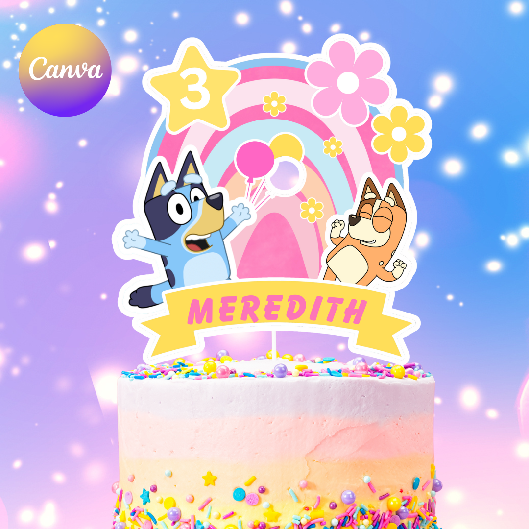 Bluey Cake Topper Editable | Bluey Birthday Party Decoration | Printable Topper Canva Template Bluey Birthday Parties Ideas