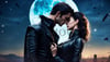 Image of a couple embracing in the forest at night with a full moon. : Paranormal romance, Love and supernatural, Fantasy couple, Ghostly love, Mystic romance, Enchanted lovers, Otherworldly passion, Supernatural relationship, Magical embrace, Eerie romance, Ethereal couple, Haunting love, Dark fantasy love, Mysterious connection, Ghostly soulmates, Fantasy love story, Paranormal passion, Enigmatic lovers, Mystic bonding, Spooky romance, Stock image, High-resolution, Fantasy background, Romantic scene, Love concept, Storytelling, Digital art, AI, Creative design, Surreal atmosphere, Dreamy backdrop, Magical elements, Beautiful couple, Artistic composition, Commercial use, Atmospheric lighting, Mystical setting, Relationship concept, Emotive characters, Fictional love, Editorial use, Advertising, Marketing, Social media, Website design, Blog post, Article illustration, Book cover, Magazine layout, Poster design, Brochure, Presentation, E-book, Print material, Digital publication, Educational materials, Background image, Wallpaper, Conceptual art, Storytelling Wolf shifter couple, Full moon background, Romantic moonlit scene, Alpha wolf pack, Fated mates embrace, Shapeshifter love, Enchanted forest setting, Moonlit meadow, Mystical bond, Howling wolves, Silhouetted trees, Nighttime romance, Alpha male and female, Lycanthropy fantasy, Supernatural passion, Mystic atmosphere, Moonlit wilderness, Fierce connection imagery, Romantic wolf eyes, Moonlit path, young adult romance, YA, PNR, paranormal romance, vampire, vampire hunter, Little Red Riding Hood, serialized online fiction cover image, Radish, Dreame, GoodNovel, iReader, Vella, SWAG, book, author, writer, blogger, creator