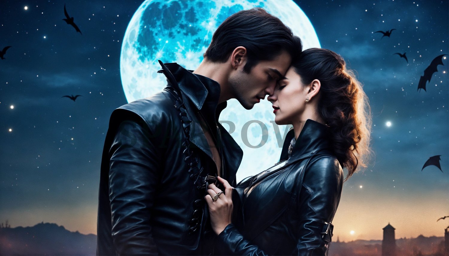 Keywords include: Paranormal romance, Love and supernatural, Fantasy couple, Ghostly love, Mystic romance, Enchanted lovers, Otherworldly passion, Supernatural relationship, Magical embrace, Eerie romance, Ethereal couple, Haunting love, Dark fantasy love, Mysterious connection, Ghostly soulmates, Fantasy love story, Paranormal passion, Enigmatic lovers, Mystic bonding, Spooky romance, Stock image, High-resolution, Fantasy background, Romantic scene, Love concept, Storytelling, Digital art, AI, Creative design, Surreal atmosphere, Dreamy backdrop, Magical elements, Beautiful couple, Artistic composition, Commercial use, Atmospheric lighting, Mystical setting, Relationship concept, Emotive characters, Fictional love, Editorial use, Advertising, Marketing, Social media, Website design, Blog post, Article illustration, Book cover, Magazine layout, Poster design, Brochure, Presentation, E-book, Print material, Digital publication, Educational materials, Background image, Wallpaper, Conceptual art, Storytelling Wolf shifter couple, Full moon background, Romantic moonlit scene, Alpha wolf pack, Fated mates embrace, Shapeshifter love, Enchanted forest setting, Moonlit meadow, Mystical bond, Howling wolves, Silhouetted trees, Nighttime romance, Alpha male and female, Lycanthropy fantasy, Supernatural passion, Mystic atmosphere, Moonlit wilderness, Fierce connection imagery, Romantic wolf eyes, Moonlit path, young adult romance, YA, PNR, paranormal romance, vampire, vampire hunter, Little Red Riding Hood, serialized online fiction cover image, Radish, Dreame, GoodNovel, iReader, Vella, SWAG, book, author, writer, blogger, creator