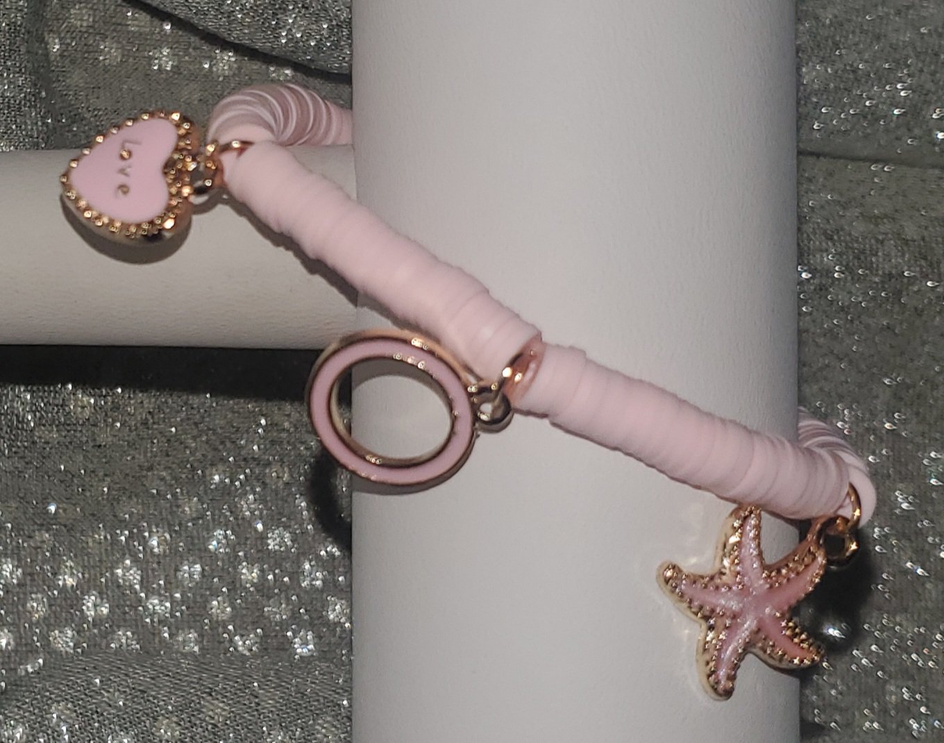 📦Light Pink Clay Bead Charm Bracelet #LPCB7