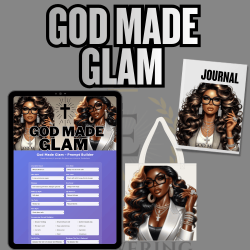 The God Made Glam Prompt Builder is a premium faith-forward AI prompt generator designed for creators who want their visuals to be bold, expressive, and anchored in identity.