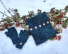 Espejos is a set of cowl + fingerless mitts, adorned by cables and buttons.