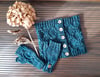 The buttons add a stylish touch. They are put all along the cowl and on the wrists of the mitts.