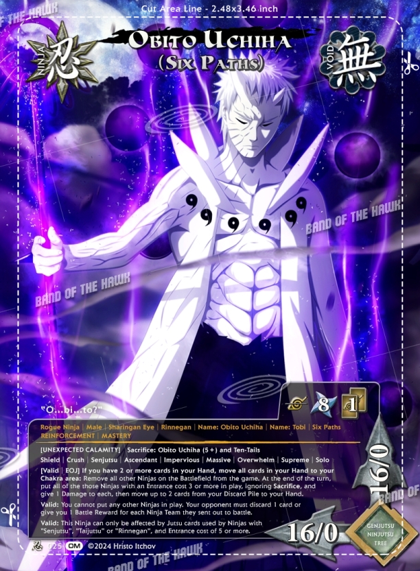 n025 - Obito Uchiha (Six Paths) Promo Ninja card from our Obito & Madara card set for Naruto CCG.