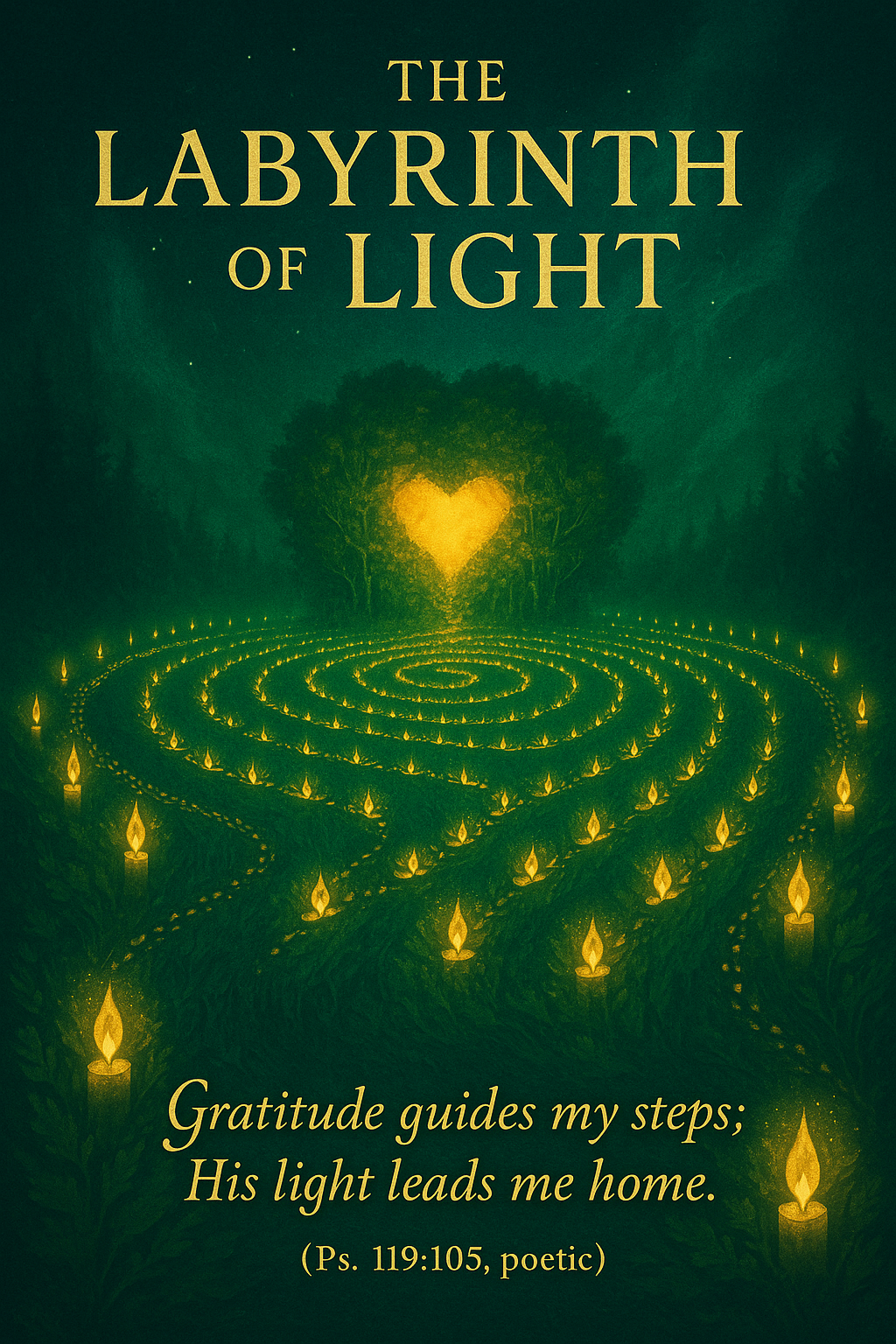 🕯️🌲 Christian Labyrinth of Light Wall Art – Psalm 119:105 Forest & Candle Poster – Faith-Based Printable for Devotion, Homeschool & Ministry – Guided by Gratitude Theme