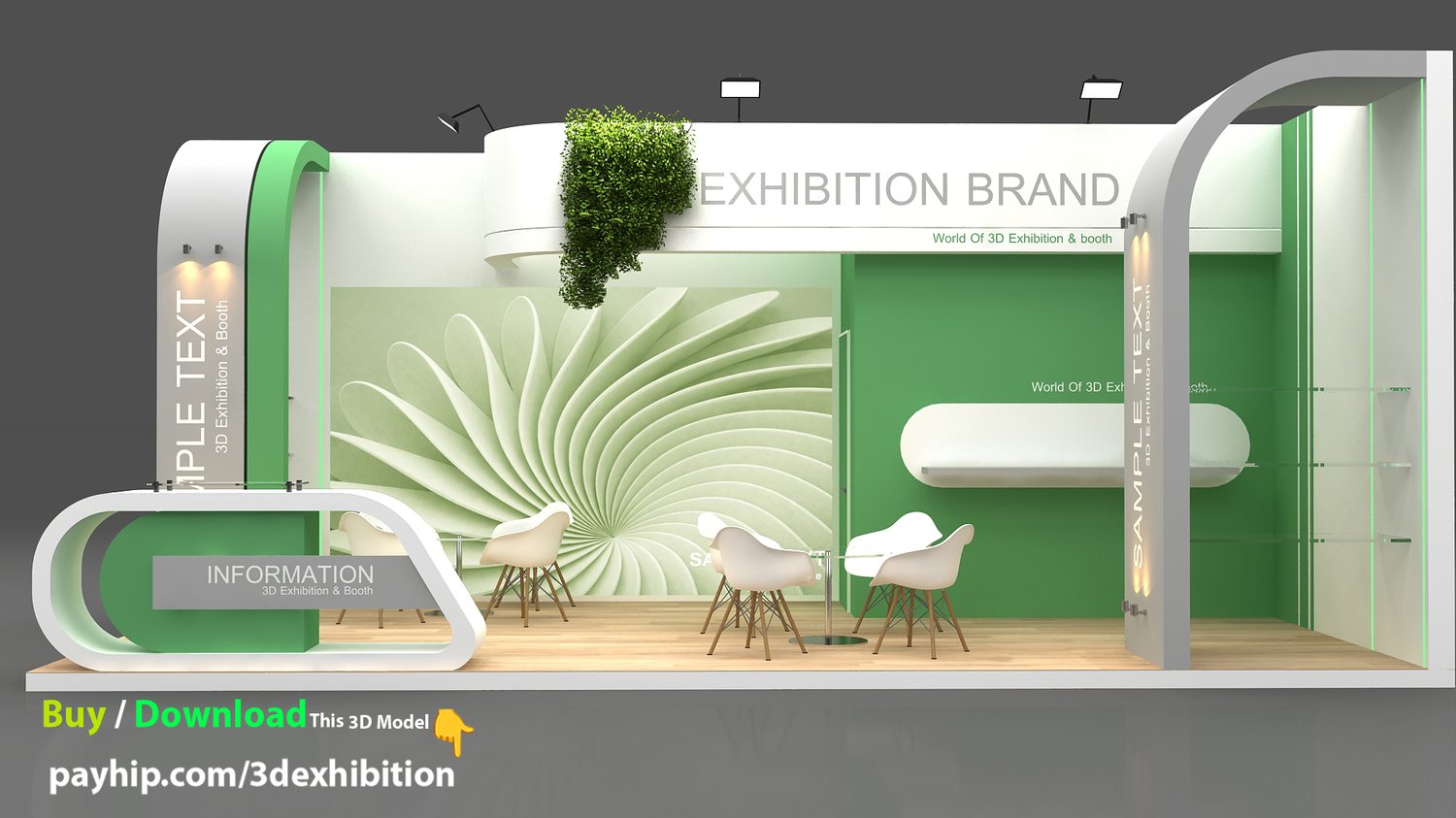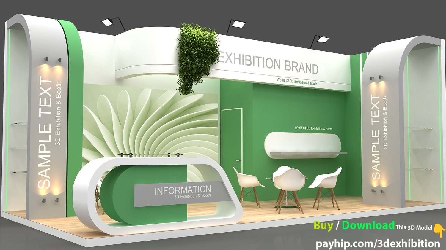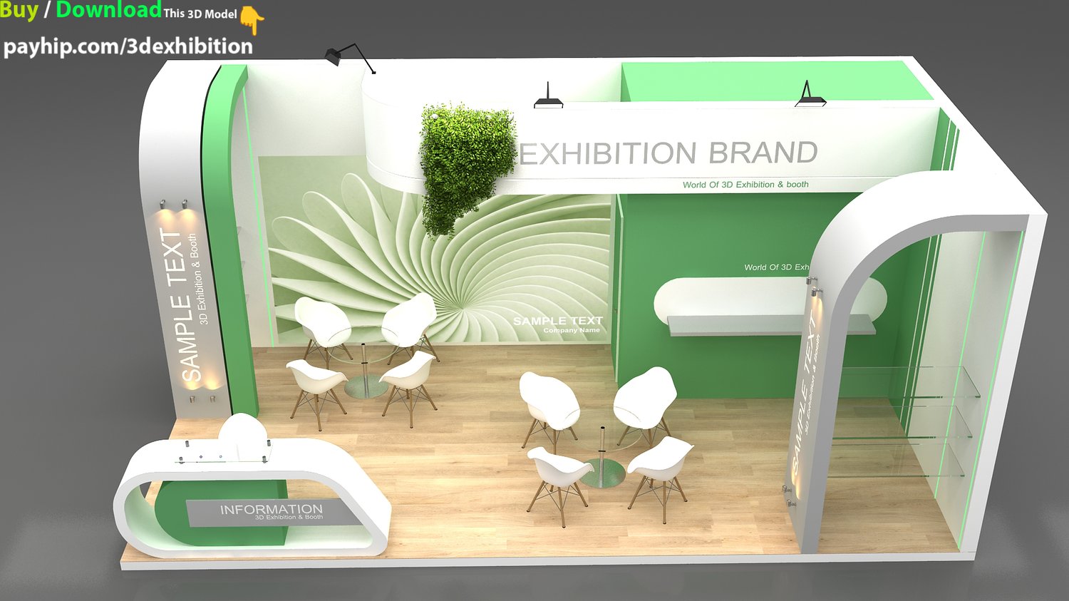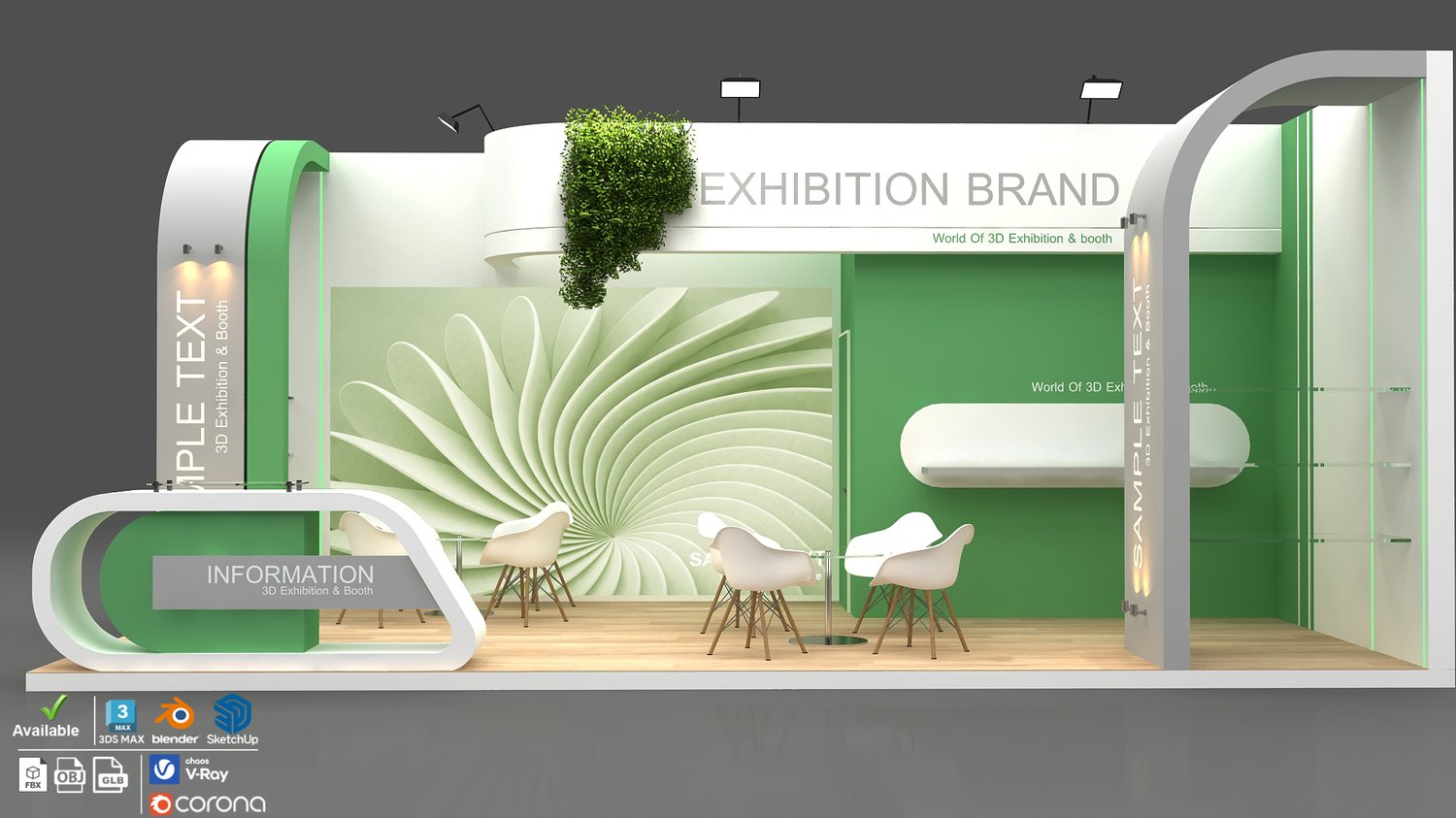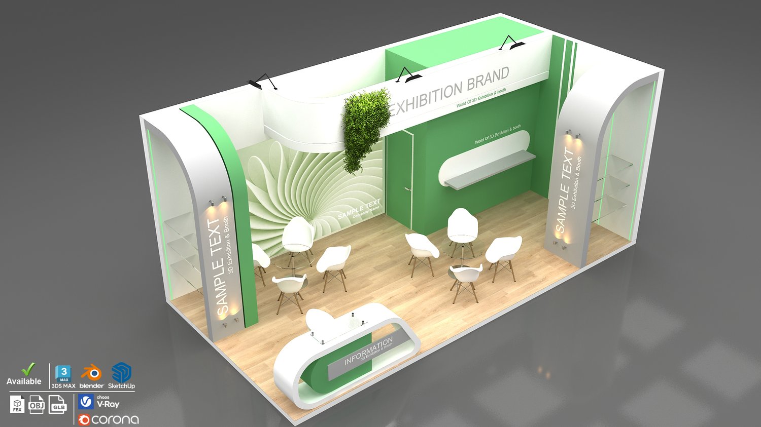 include design all necessary area in Exhibition and Booth Such as Vip and Storage and Counters and also Stand for products