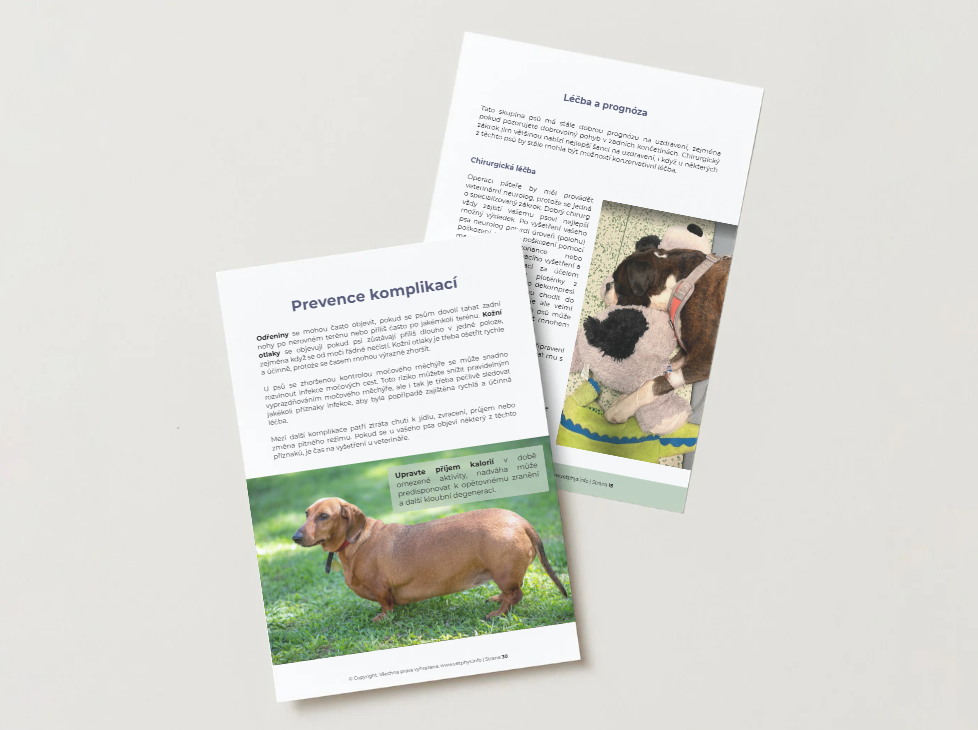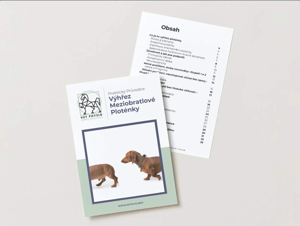 Výhřez meziobratlové ploténky (diskopatie) může přinést mnoho nejistoty a obav, ale nemusíte v tom být sami. V tomto průvodci najdete stručné informace, které vám pomohou porozumět diagnóze, učinit informovaná rozhodnutí a co nejlépe podpořit vašeho psa během rekonvalescence.