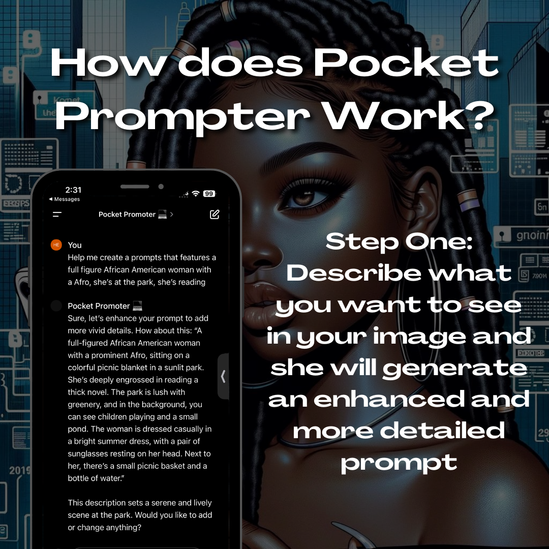 The "Pocket Prompter" is an innovative extension designed for chatbot platforms, specifically tailored to enhance user interactions with Dall•E, the advanced image generation AI. This extension acts like a creative assistant, skillfully translating users' words into detailed, optimized prompts that unlock the full potential of Dall•E's image creation capabilities. Whether you're a professional designer seeking inspiration or an enthusiast exploring the realms of AI-generated art, the Pocket Prompter streamlines the process, ensuring your ideas are vividly and accurately brought to life. Simple to use yet powerful in function, this tool is a must-have for anyone looking to maximize their creative outcomes with Dall•E.